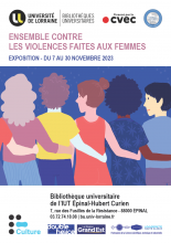 La BU de l’IUT d’Épinal vous invite à découvrir l’exposition « Ensemble contre les violences faites aux femmes » créée par Double Hélice et prêtée par Escales des Sciences, en lien avec la journée internationale de lutte contre les violences faites aux femmes du 25 novembre. Cette exposition sillonne la région Grand Est dans le cadre d’Escales des sciences, une initiative qui bénéficie du soutien de la région et menée en partenariat avec Accustica et La Nef des sciences, qui vise à faire voyager les sciences sur le territoire à la rencontre des citoyens, petits et grands.