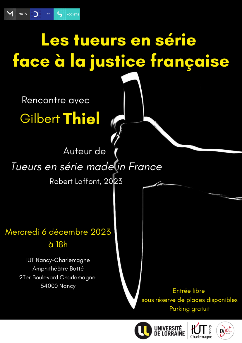 L’ancien juge et auteur Gilbert Thiel est invité dans le cadre du cycle de conférences Mots de Société organisé par les étudiants du BUT Information-Communication Métiers du Livre et du Patrimoine, option librairie, de l’IUT Nancy-Charlemagne.