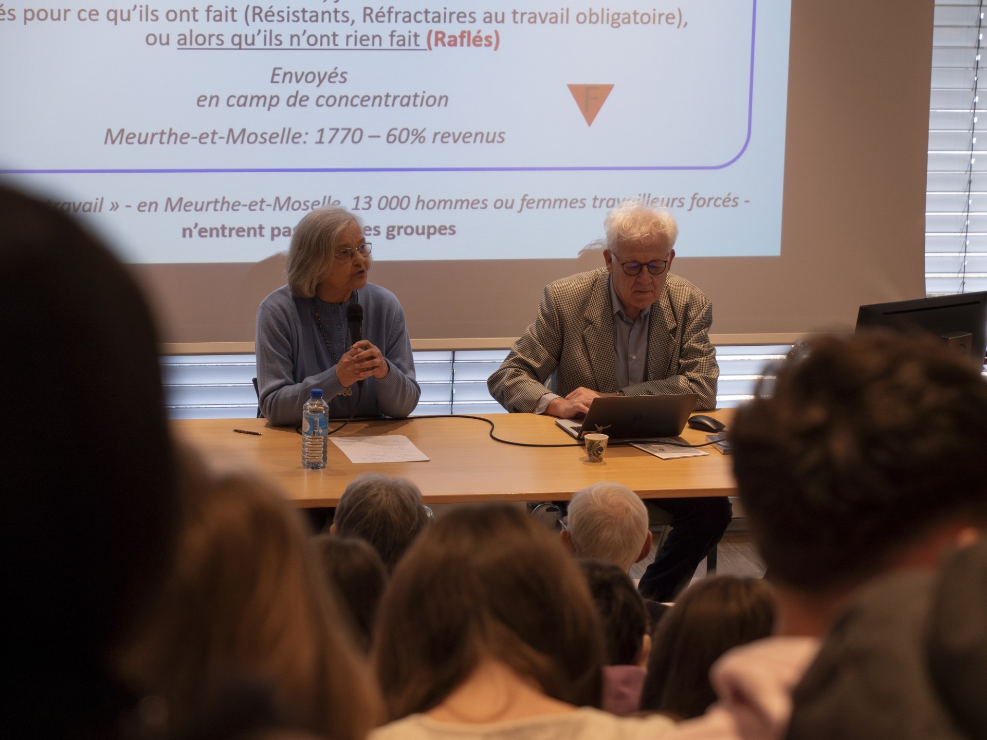 Une présentation des rafles et déportations de 1943 a été donnée par Mme Claude Favre et M.Patrice Lafaurie, historiens, suivi d'un témoignage de M. Stéfan Lewandowski, jeune résistant lorrain déporté.