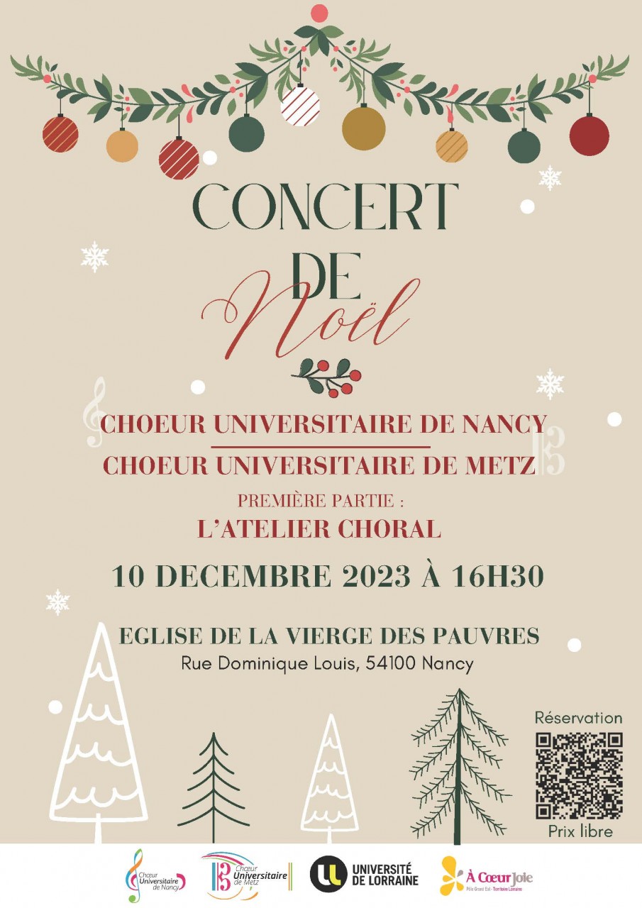 Dimanche 10 décembre à 16h30, les Chœurs universitaires de Metz et de Nancy joignent leur voix à l’occasion de leur concert de Noël à l’Église de la Vierge-des-Pauvres. L’atelier chorale assurera la première partie.