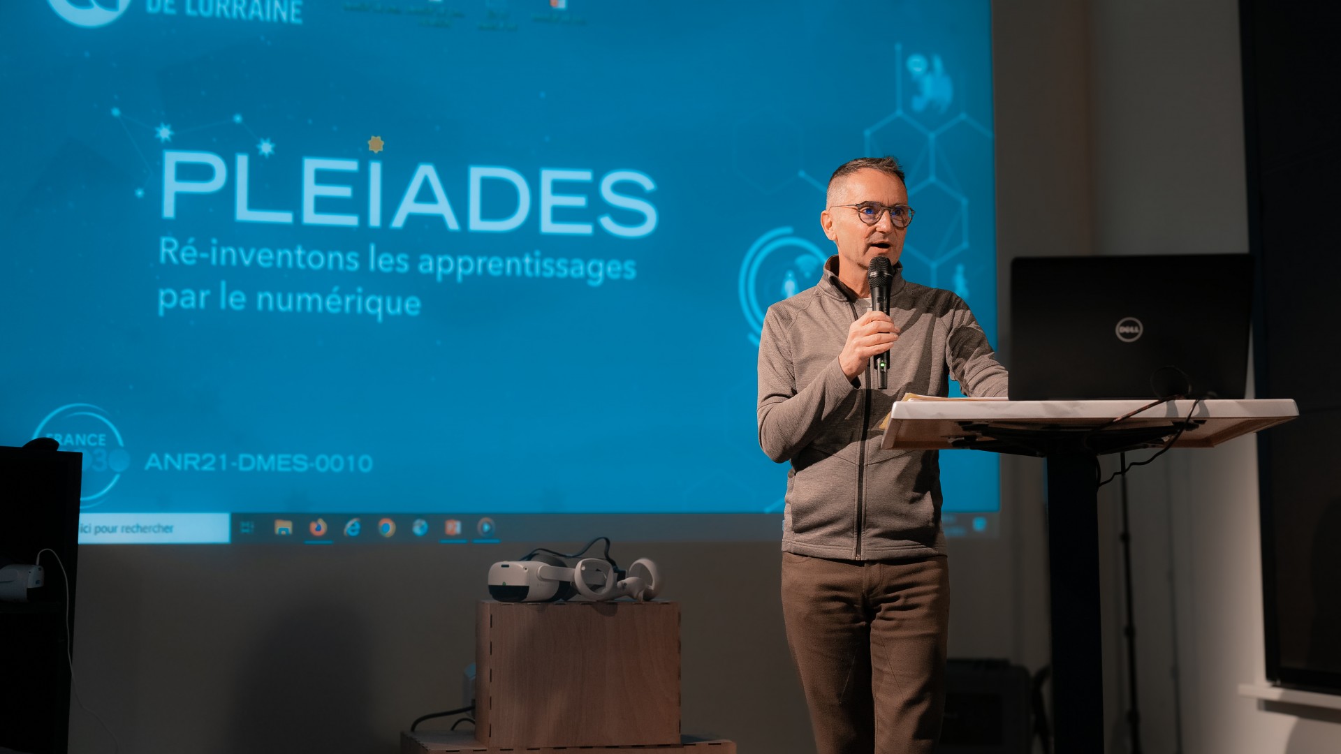 Le 1er décembre dernier, le programme Environnements du projet PLEIADES a accueilli un événement dédié à la réalité étendue* (ou XR pour Extended Reality), placé sous le signe de l'échange et des rencontres. Ce rendez-vous a rassemblé les porteurs de projets, les équipes de la Sous-direction des Usages du Numérique, et les enseignants-chercheurs curieux de découvrir les applications concrètes de la réalité virtuelle, mixte et augmentée à l’Université de Lorraine.