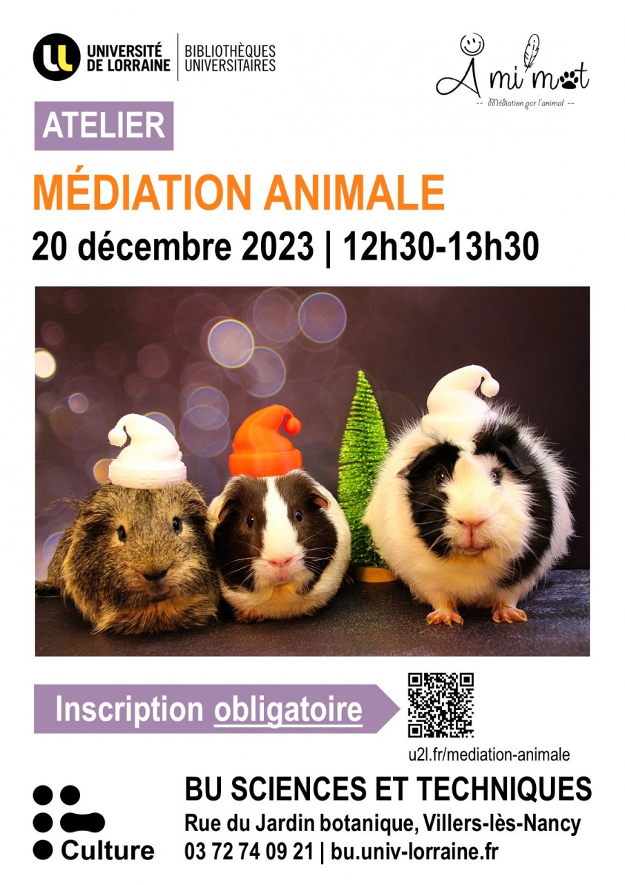 La BU Sciences et Techniques vous propose une pause détente pour câliner des boules de poils. Chiens et cochons d’inde seront à l’honneur lors de cet atelier.