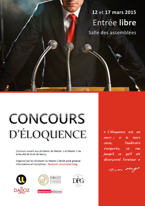 « Le juriste n'est-il qu'un rhéteur ? », « Optimisation ou fraude fiscale ? La société McDonald's demande la nationalité luxembourgeoise pour tous ses Big Mac ! », « 21.700 emplois ont disparu, en France, au premier trimestre 2014. Le ministre du travail porte plainte pour vol » ou encore « Vivement dimanche ! » voici quelques exemples de sujets originaux oscillants entre l'actualité, le droit et l'humour sur lesquels les huit binômes inscrits au concours d'éloquence ont plaidé durant les différentes étapes, à la Faculté de droit face à un jury composé entre autre du doyen Eric Germain et du président de l'association des anciens étudiants, Mr Vicq .