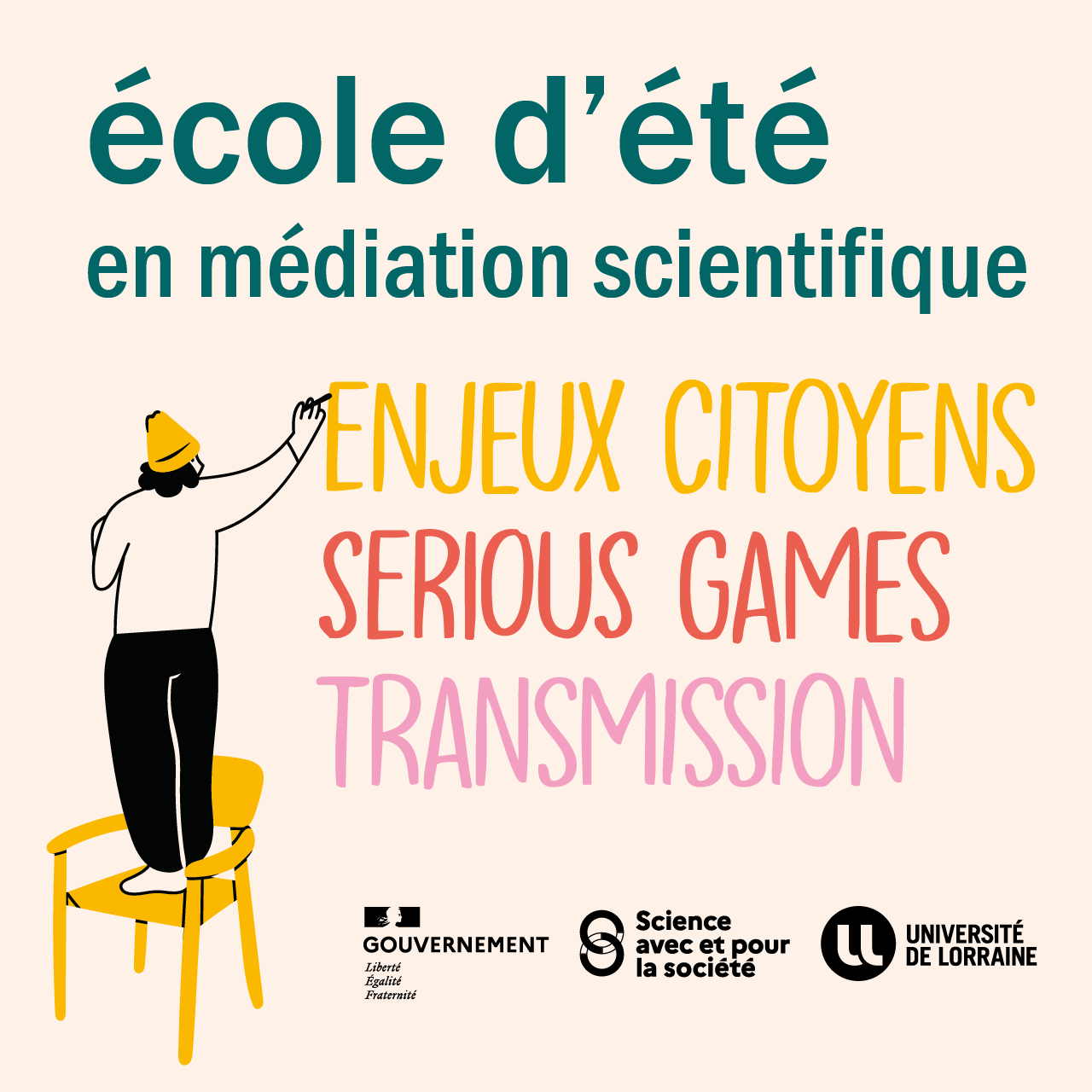 L’école d’été en médiation scientifique organisée dans le cadre du label Science Avec et Pour la Société (SAPS) de l’Université de Lorraine et de ses partenaires du site lorrain revient pour une seconde édition du 1er au 4 juillet 2024 ! Doctorant·e·s et professionnels de la médiation, de la recherche et des sciences et techniques du Grand Est se retrouveront à Vigy, en Moselle, sur les thématiques du jeu, des enjeux citoyens et de la transmission en médiation scientifique.