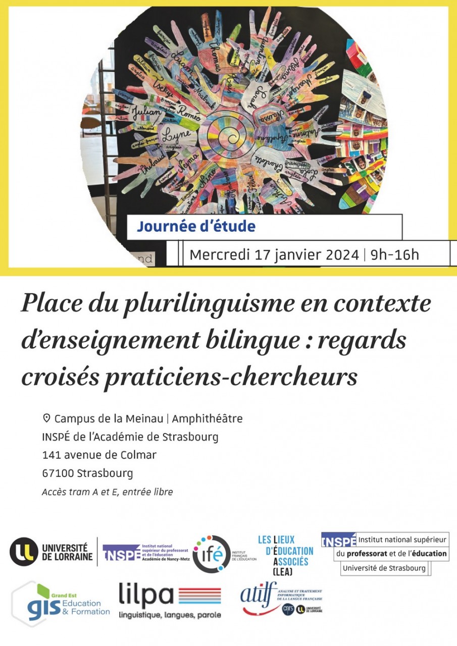 Cette journée d’étude vise à favoriser le croisement de regards « monde du terrain » et « monde de la recherche » pour mieux comprendre en quoi la prise en compte de la pluralité linguistique et culturelle des élèves et de leurs familles est à la fois stimulante et problématique. Cette journée d’étude est définie comme un espace réflexif, à partir de présentations conjointes binômes/trinômes d’enseignant·es et chercheuses invitées, sur des pratiques plurilingues à l’école primaire. Cinq groupes d’enseignant·es de l’école Jean Jaurès (Académie Nancy-Metz), en dispositif immersion anglais-français, vont proposer des manières de faire ressource avec la pluralité linguistique et culturelle des élèves et de leurs familles. Cinq chercheuses de l’Université de Strasbourg, de l’Université de Franche-Comté et de l’Université de Bretagne Occidentale vont mobiliser leurs savoirs pour discuter les pratiques présentées. Le public, dont nous imaginons l’intérêt à la fois pour les recherches collaboratives et la thématique du plurilinguisme à l’école sera invité à donner son point de vue, et éventuellement partager ses expériences. Nous souhaitons de cette journée d’étude qu’elle rende visible comment les un·es et les autres analysent les activités enseignantes et les conçoivent comme ressources de formation, dans un éclairage mutuel.
