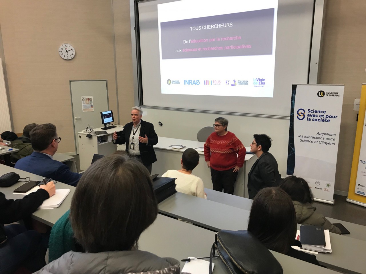 Hélène BOULANGER, Présidente de l’Université de Lorraine et Meriem FOURNIER, Présidente du Centre INRAE Nancy Grand-Est, ont introduit la matinée avec une sensibilisation importante sur l’éducation par la recherche et l'importance de l'esprit critique pour lutter contre la désinformation.