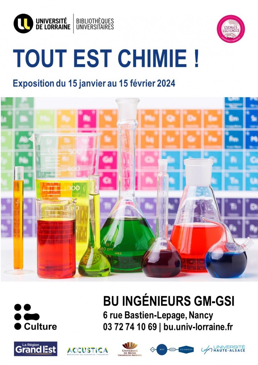 L’exposition "Tout est chimie" à la BU Ingénieurs GM-GSI propose de découvrir une chimie en plein renouveau qui explore des domaines inattendus de notre quotidien.