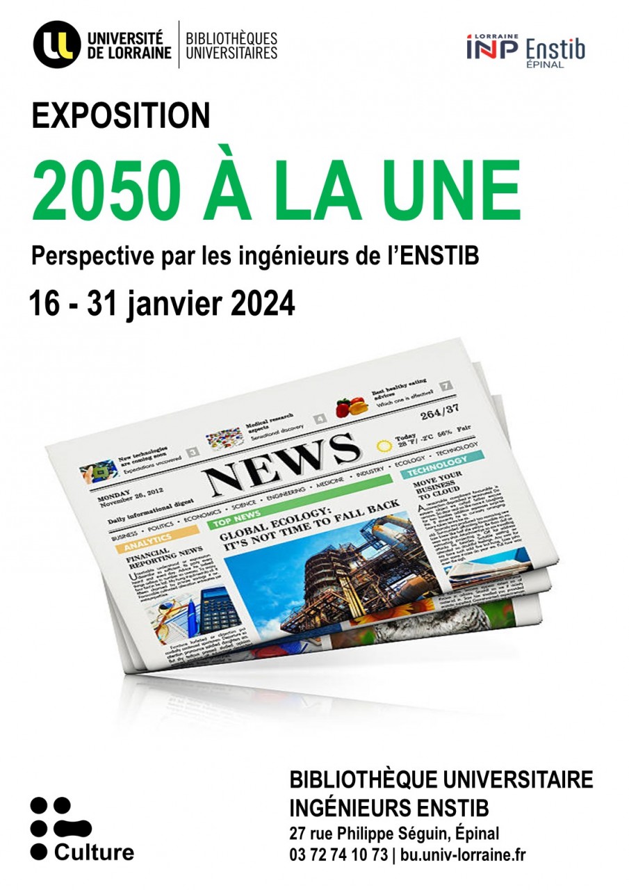 La BU Ingénieurs ENSTIB accueille jusqu’au 31 janvier 2024 l’exposition "2050 à la Une".