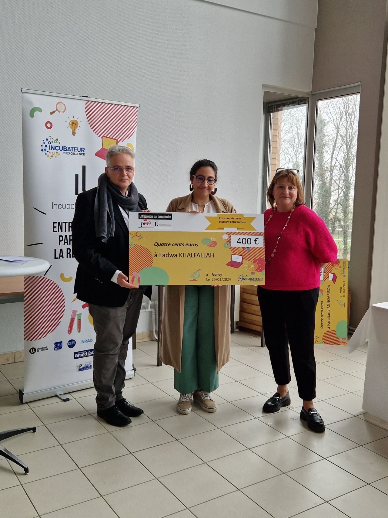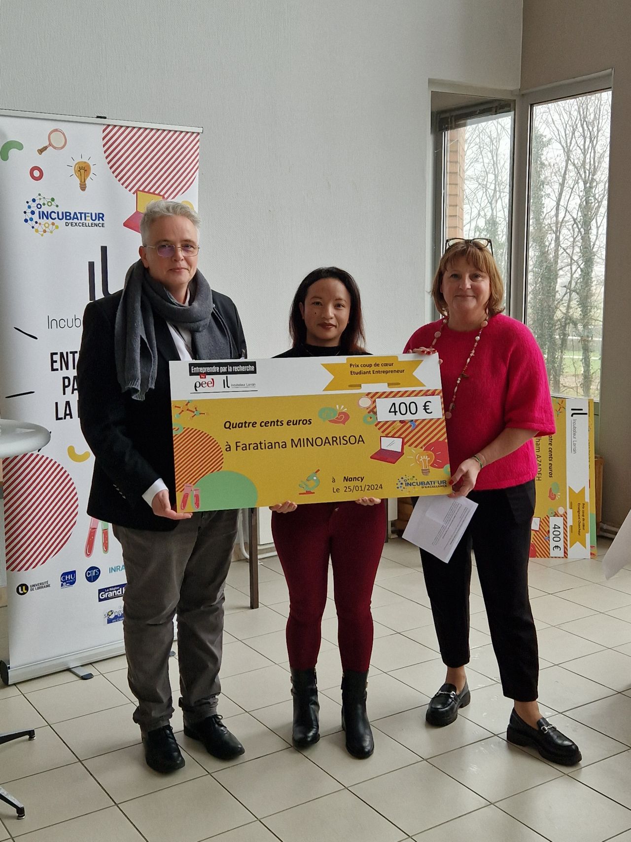 Les lauréats de l'appel à projets 2023 de l'Incubateur Lorrain se sont vus remettre leur prix le 25 janvier dernier par Hélène Boulanger, présidente de l'Université de Lorraine et présidente de l'Incubateur Lorrain. Cet appel à projet issu du dispositif Global Incubation, a pour objectif de détecter des porteurs d’idées entrepreneuriales chez les doctorants les post-doctorants et les enseignants-chercheurs.