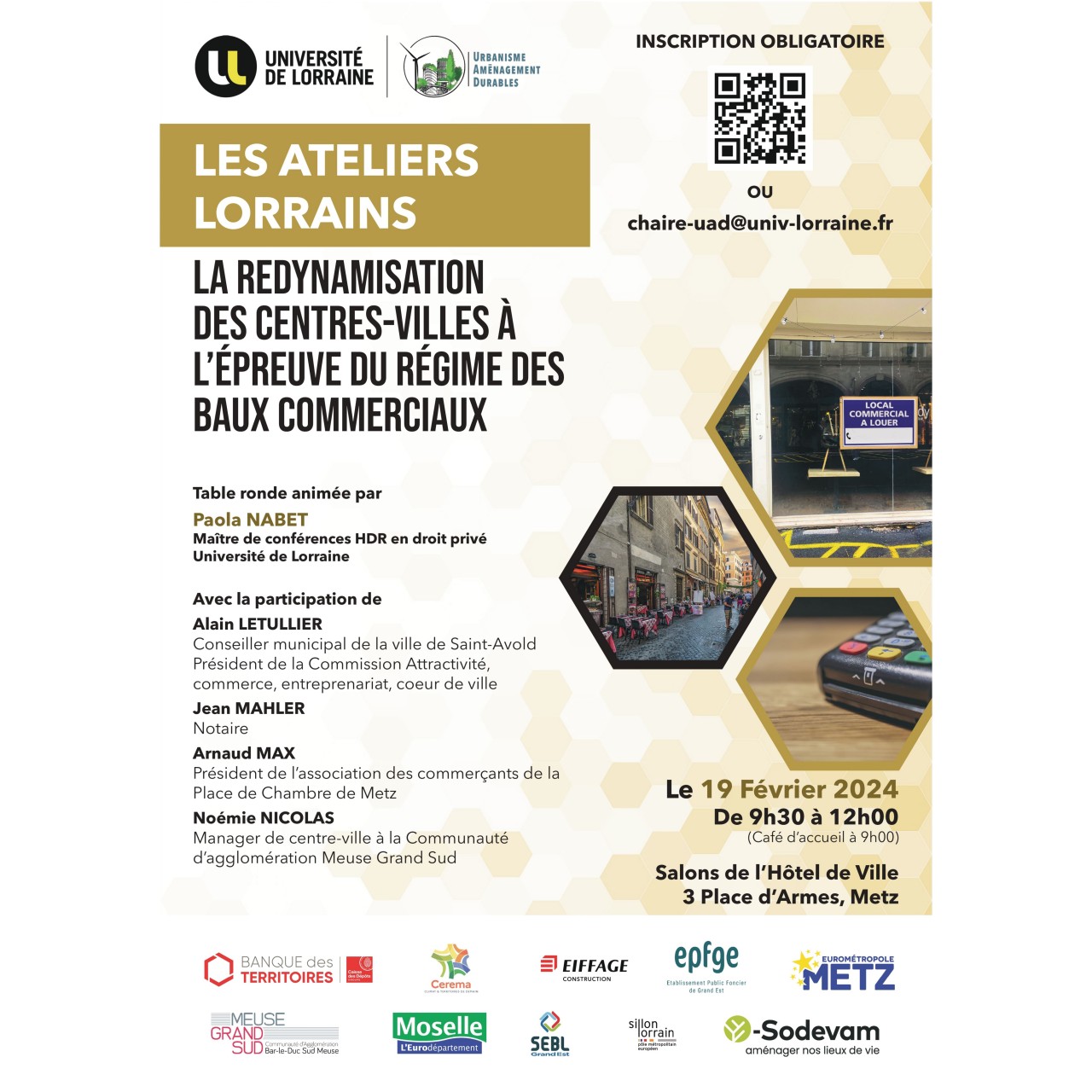 Inscription obligatoire : https://u2l.fr/xzduzt ou sur: chaire-uad@univ-lorraine.fr