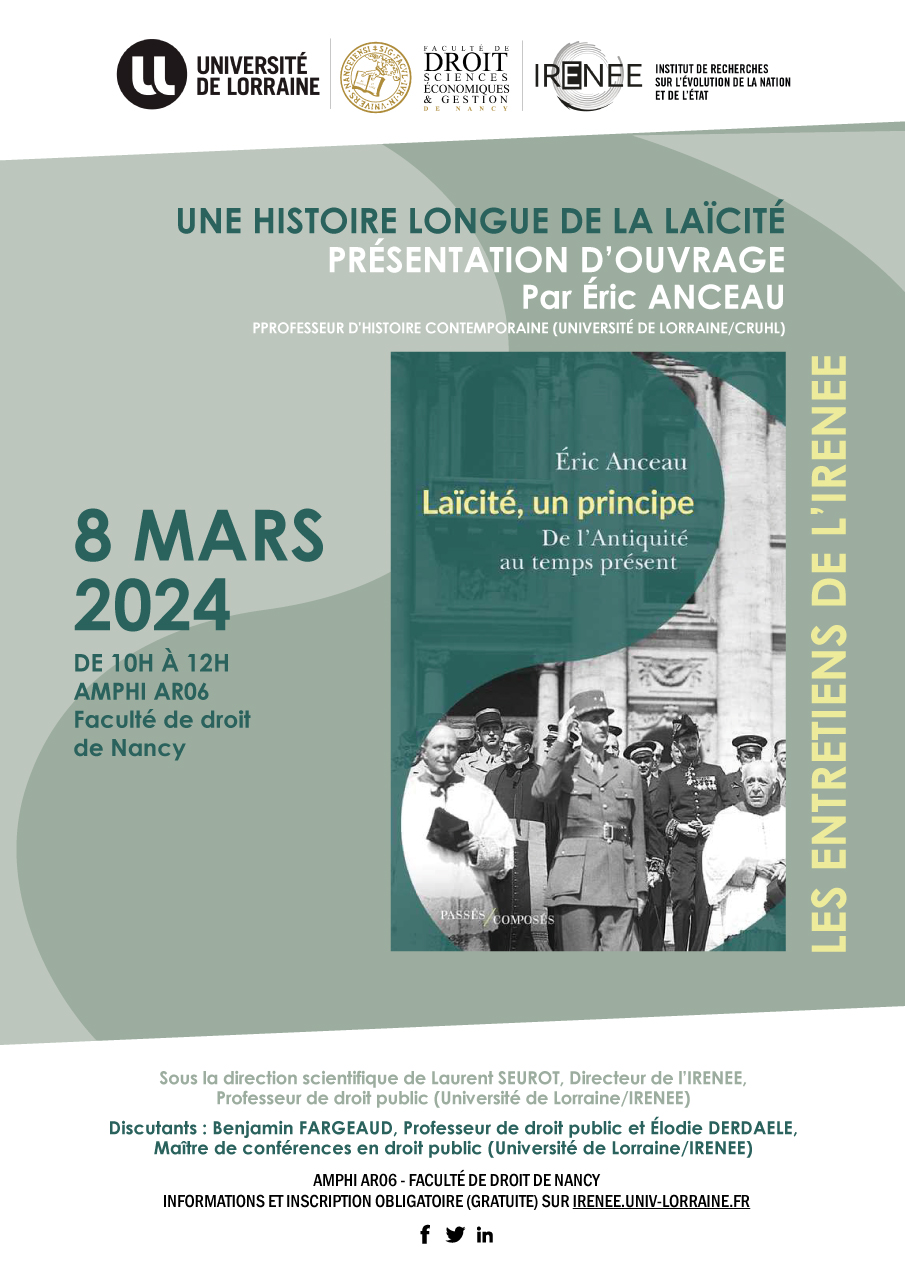 Présentation de l'ouvrage Laïcité, un principe - De l'Antiquité au temps présent (PASSÉS/COMPOSÉS 2022)