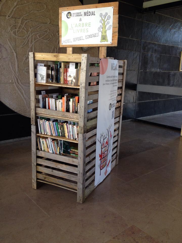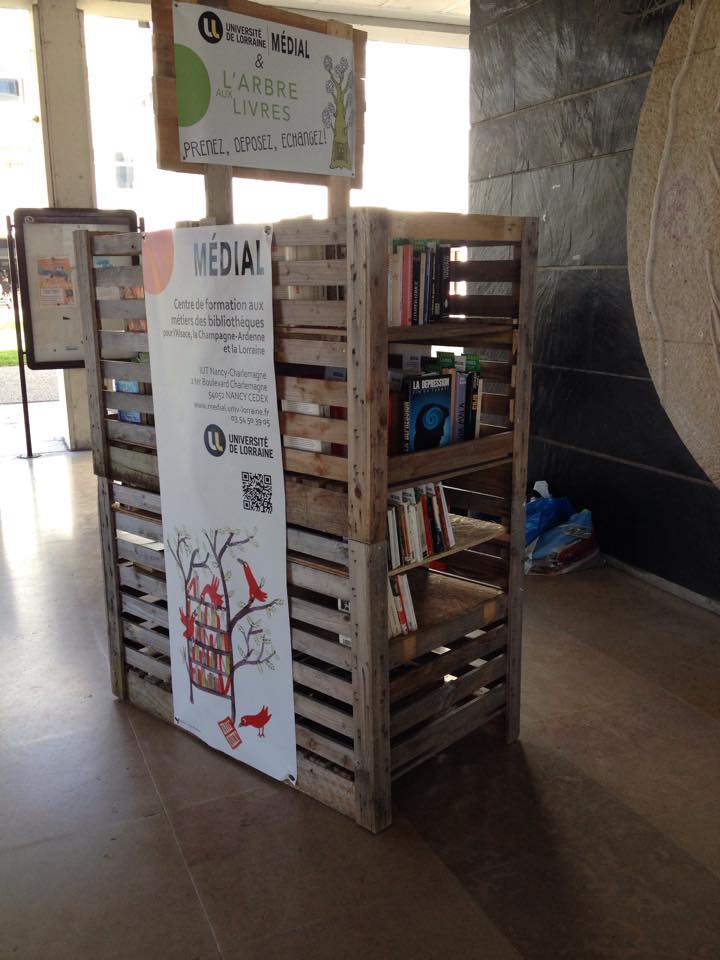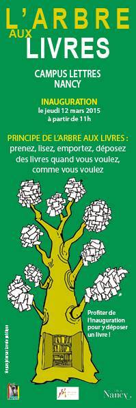 L'arrivée du printemps a vu éclore à l'entrée principale du Campus Lettres et Sciences Humaines un arbre aux livres. Inaugurée la semaine dernière, cette bibliothèque mobile invite tous les étudiants de la fac de lettres à découvrir un choix hétéroclite d'ouvrages et à découvrir par la même occasion l'éventail de formations proposé par MEDIAL, le Centre de formation aux métiers des bibliothèques de l'Université de Lorraine, hébergé à l'IUT Nancy-Charlemagne.