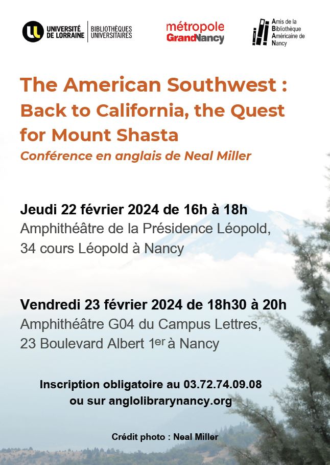 En cette nouvelle année 2024, l’association des Amis de la Bibliothèque américaine de Nancy (ABAN) reprend la programmation de son cycle de conférences intitulé "The American Southwest" qui est proposé en anglais par Neal Miller, un membre actif de l’ABAN depuis sa fondation en 1988.
