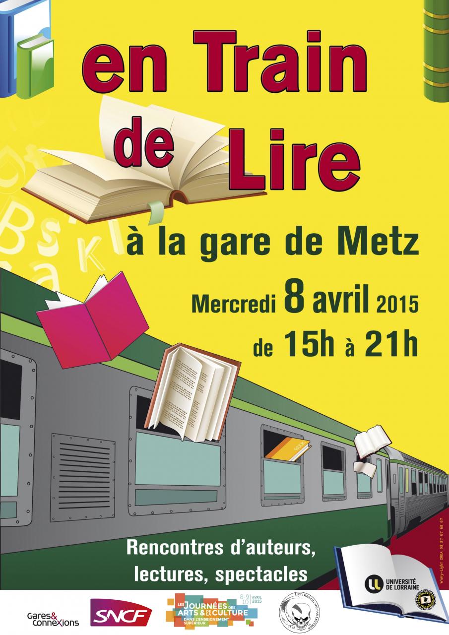 Les étudiants de 2ème année du DU "Médiations Littéraires" et du Master PRO "Lettres – Parcours Littératures et Médiations" organisent le mercredi 8 avril 2015, en gare de Metz, de 15h à 21h, un projet de médiation littéraire, intitulé "En train de lire".