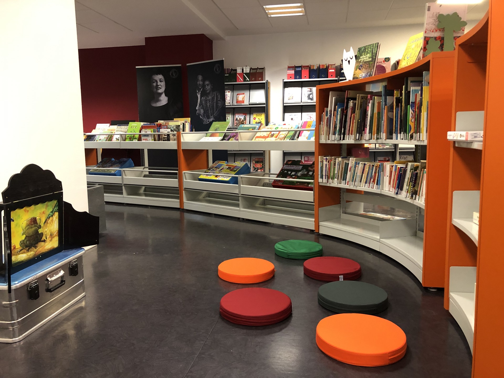 Cet espace pensé modulable facilite l’accueil de groupes d’enfants pour des activités de médiation autour de la littérature de jeunesse. Cette modularité permet également la transformation de ce lieu en un espace d’exposition artistique contribuant à l’Éducation Artistique et Culturelle.