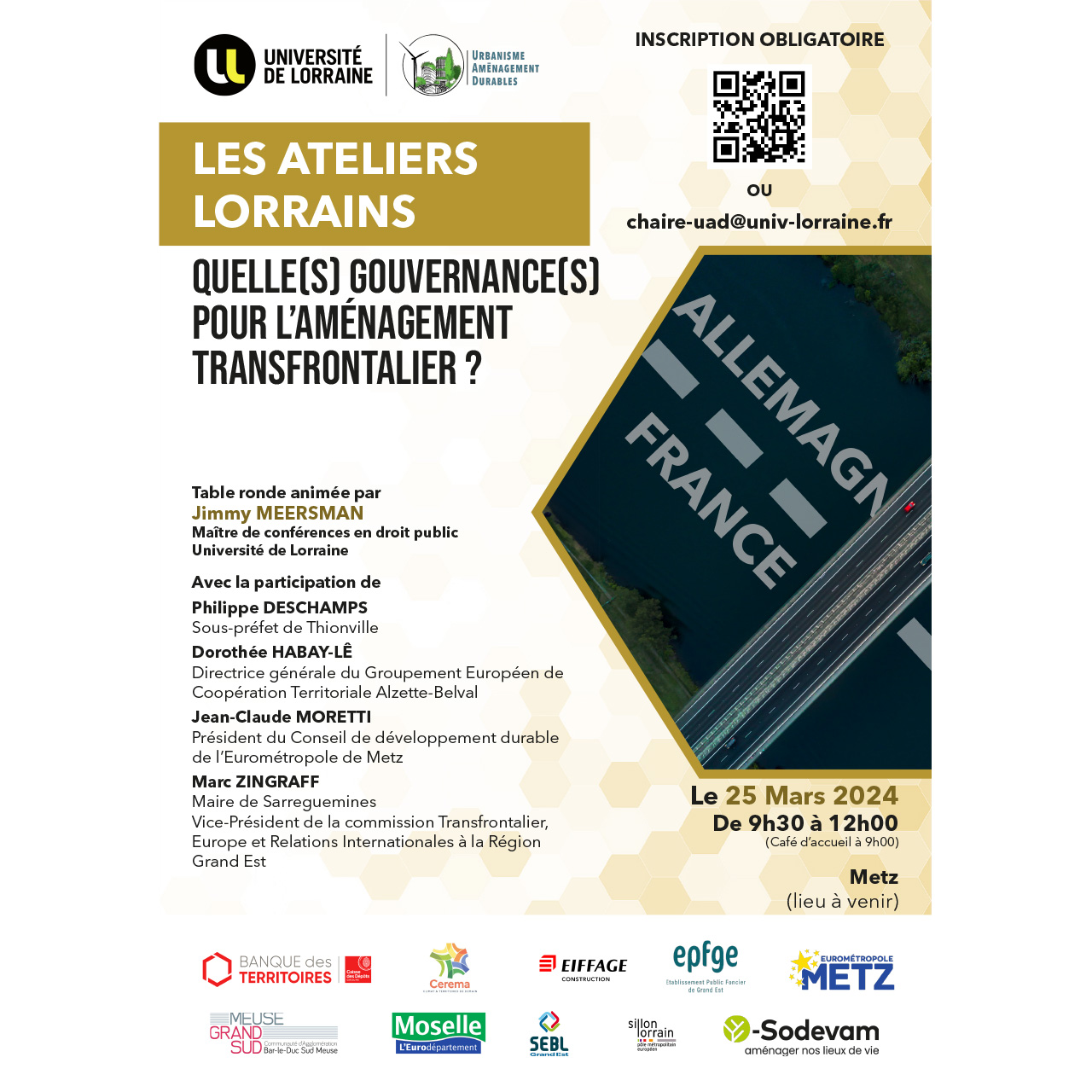 Dans le cadre de son cycle annuel de tables rondes, les ateliers lorrains de la chaire UAD de l'Université de Lorraine ont vocation à réunir le monde socio-économique pour échanger sur des problématiques d’urbanisme et d’aménagement.