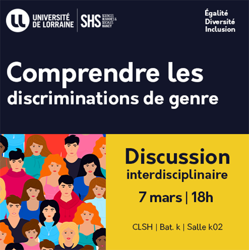 Rencontre organisée par le département de philosophie & la cellule Égalité, Diversité, Inclusion de l'UFR SHS-Nancy dans le cadre de la Journée internationale des droits des femmes.
