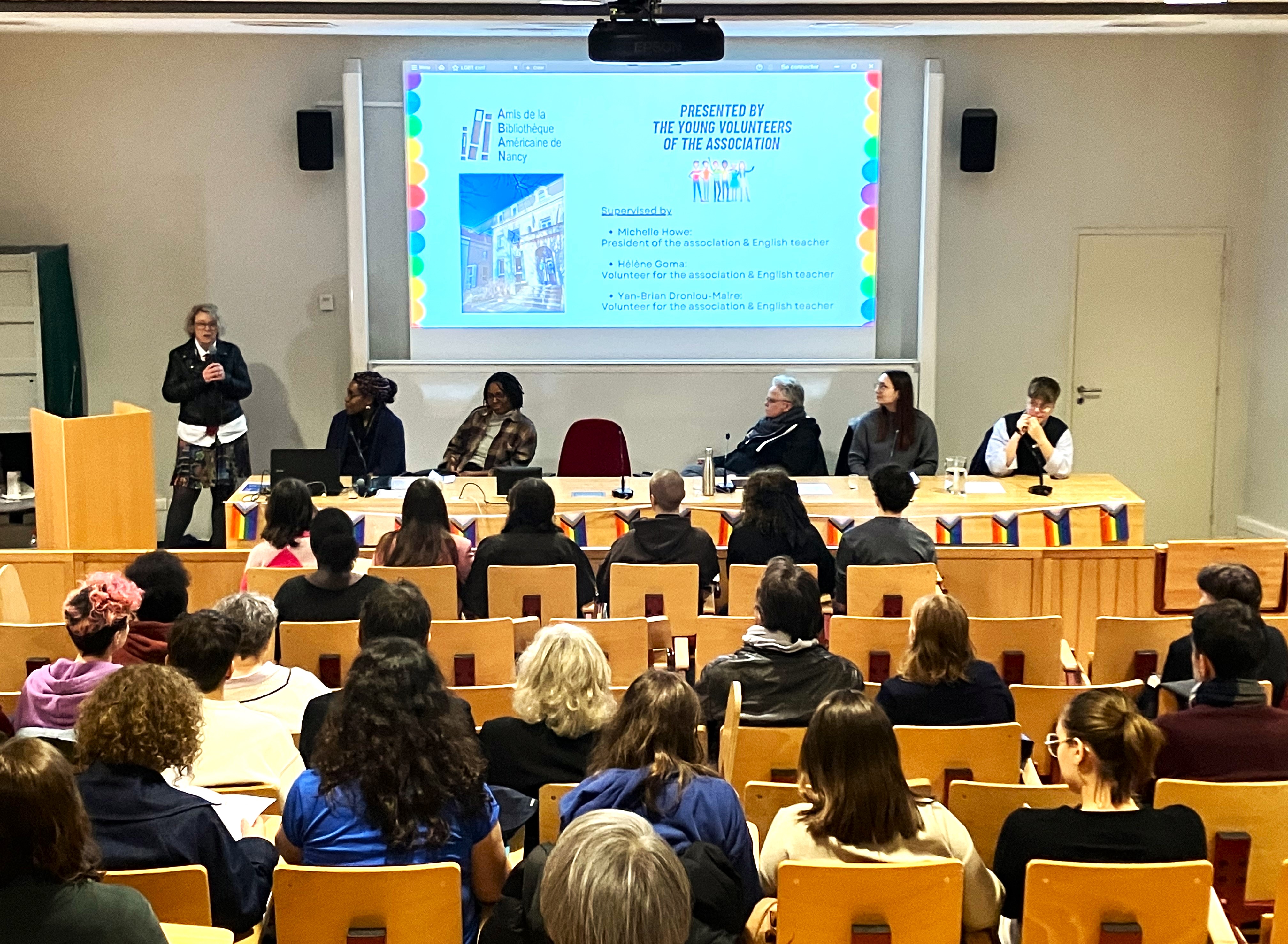 Le samedi 10 février 2024, la Bibliothèque américaine de Nancy a exceptionnellement ouvert ses portes au public de 13h à 18h. La journée a été marquée par la table ronde LGBTALK+, animée et organisée par la commission jeunes bénévoles des Amis de la Bibliothèque américaine de Nancy, en présence de Mathieu Klein, maire de Nancy et Hélène Boulanger, présidente de l’Université de Lorraine, parmi plusieurs intervenants.