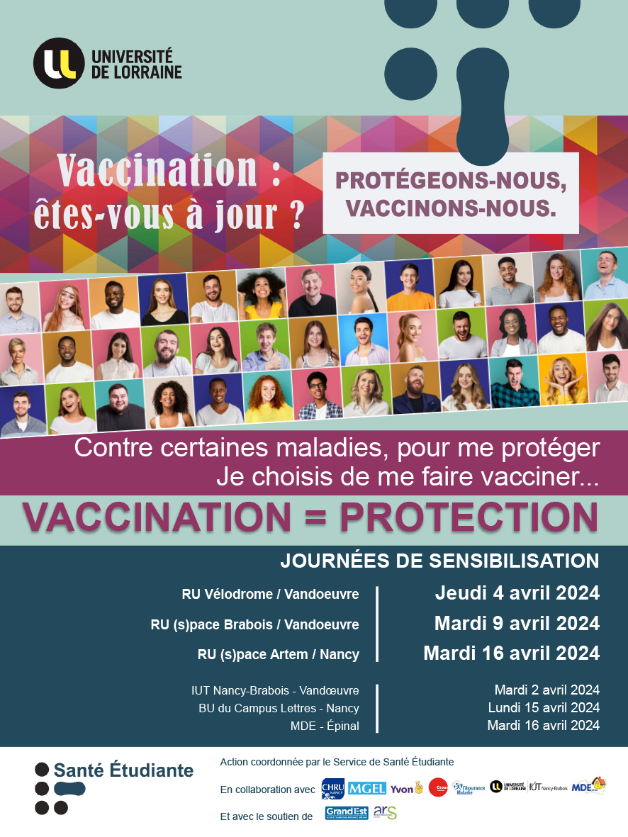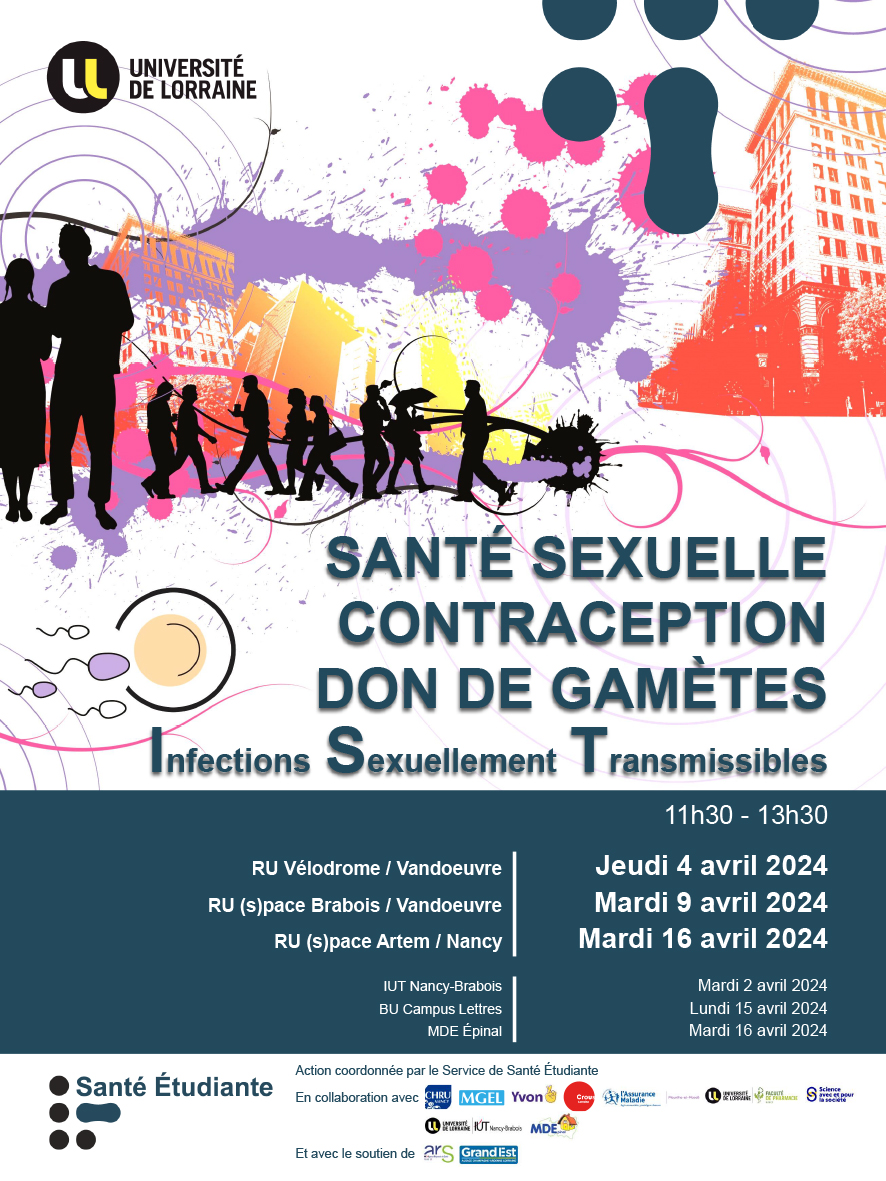 "Le Service Santé Étudiante (SSE) site Lorraine Sud de l’Université Lorraine (UL), en collaboration avec la CPAM 54, le CHRU de Nancy (centre d'AMP de la Maternité et centre de vaccination de Brabois), le CROUS, la MGEL/YVON et la Faculté de Pharmacie de l’UL, et avec le soutien de l’ARS et de la Région Grand Est, propose aux étudiants Lorrains une campagne de sensibilisation et de prévention sur la double thématique « Vie Amoureuse et Vaccination ».
