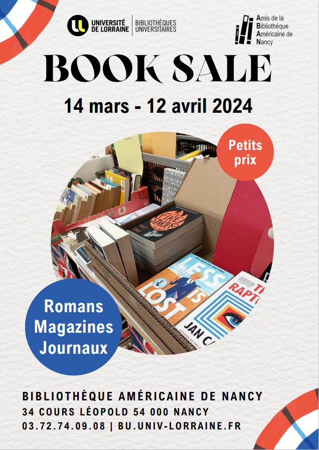 Cette vente se déroulera sur une période d’un mois du 14 mars au 12 avril 2024 dans l’espace d’accueil de la Bibliothèque Américaine, située au 34 cours Léopold à Nancy.