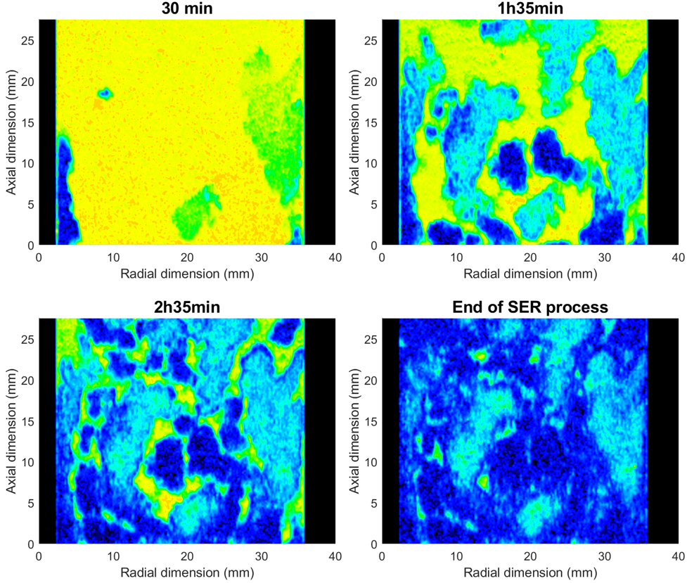 Images consécutives de l’IRM pendant l’application de l’injection des tensioactifs pour la remédiation du milieu poreux contaminé par LNAPL