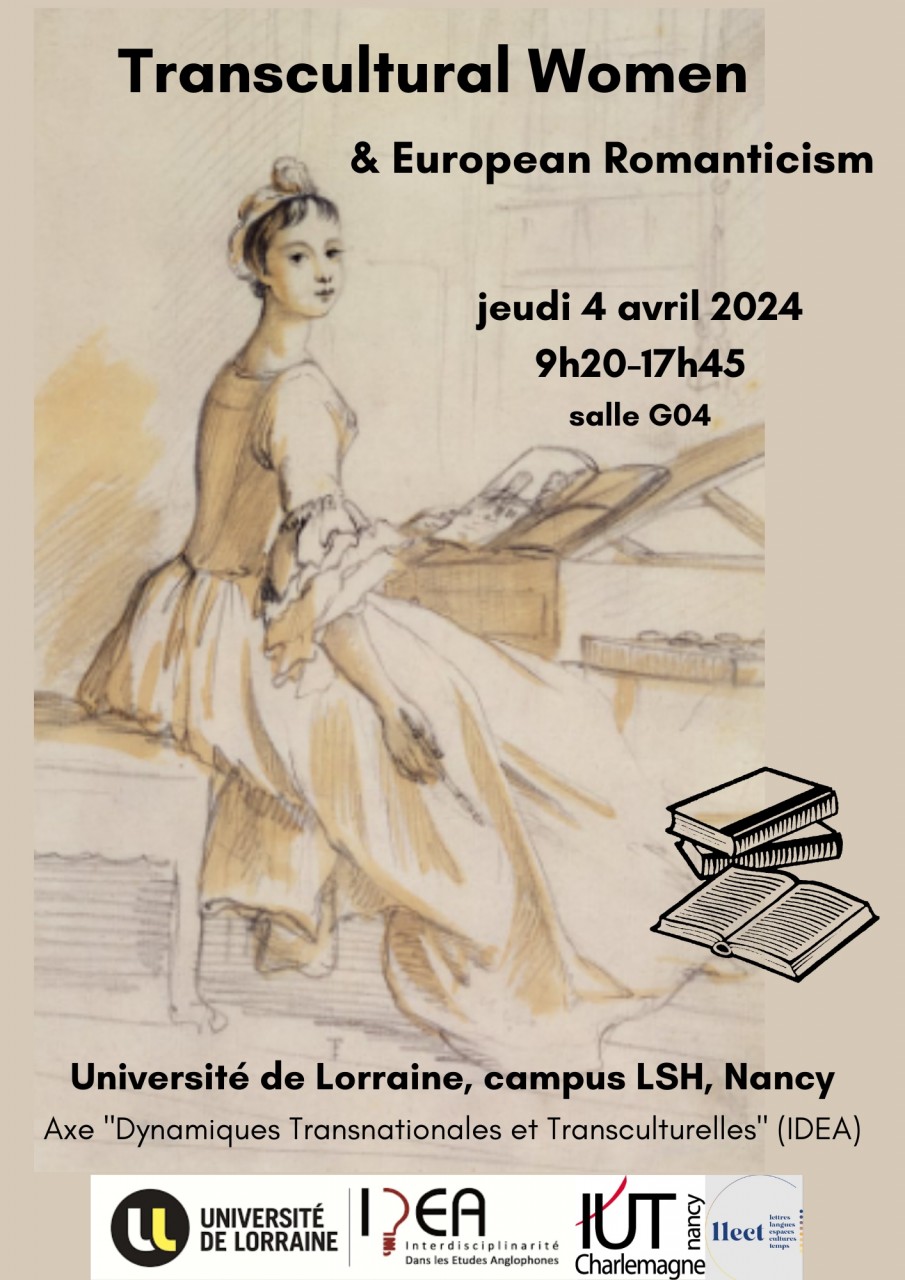 Cette Journée d'Étude composée d'un panel international d'intervenant·es s'intéresse au rôle significatif des femmes transculturelles et souvent plurilingues à l'époque romantique. Cette période marque un tournant notable avec une participation accrue des femmes à la publication d’articles et à la réalisation de traductions depuis l’italien, le français et l'allemand vers l’anglais. Ces femmes peuvent être natives de la Grande-Bretagne ou issues des communautés d’exilés français, allemands et italiens, conséquence notamment des bouleversements liés à la Révolution française et à l’impact de l’ère napoléonienne en France, en Allemagne et en Italie. Nous explorons donc aussi le rôle significatif qu’elles ont joué, ainsi que les interactions qu’elles ont développées et entretenues avec leurs pays d’accueil et d’origine. Nous souhaitons aussi explorer, comment, dans le contexte encore très masculin de l’édition, les femmes écrivaines ont eu la possibilité de publier et donc d’émerger comme des voix distinctes.