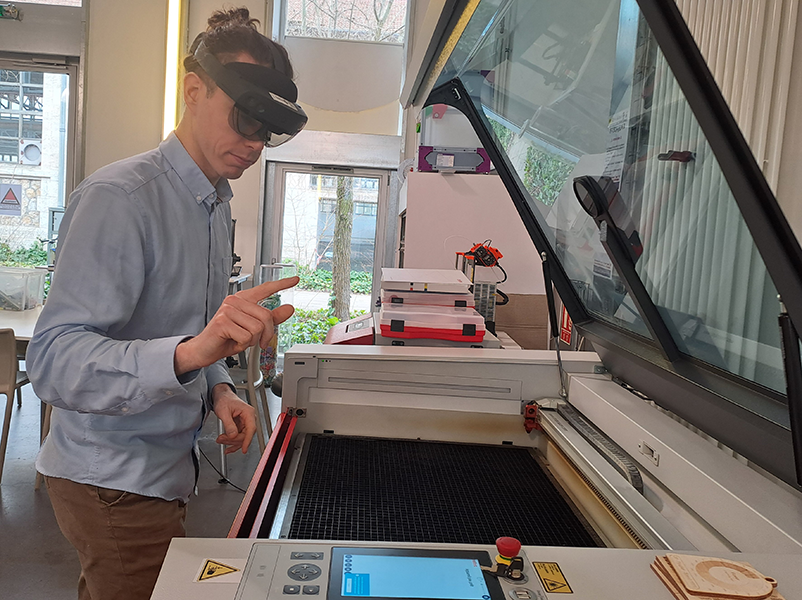 La douzaine de personnes ayant participé à la démonstration ont pu apprendre avec la réalité augmentée à utiliser une machine de découpe laser disponible au Carrefour Numérique² de la Cité des Sciences.