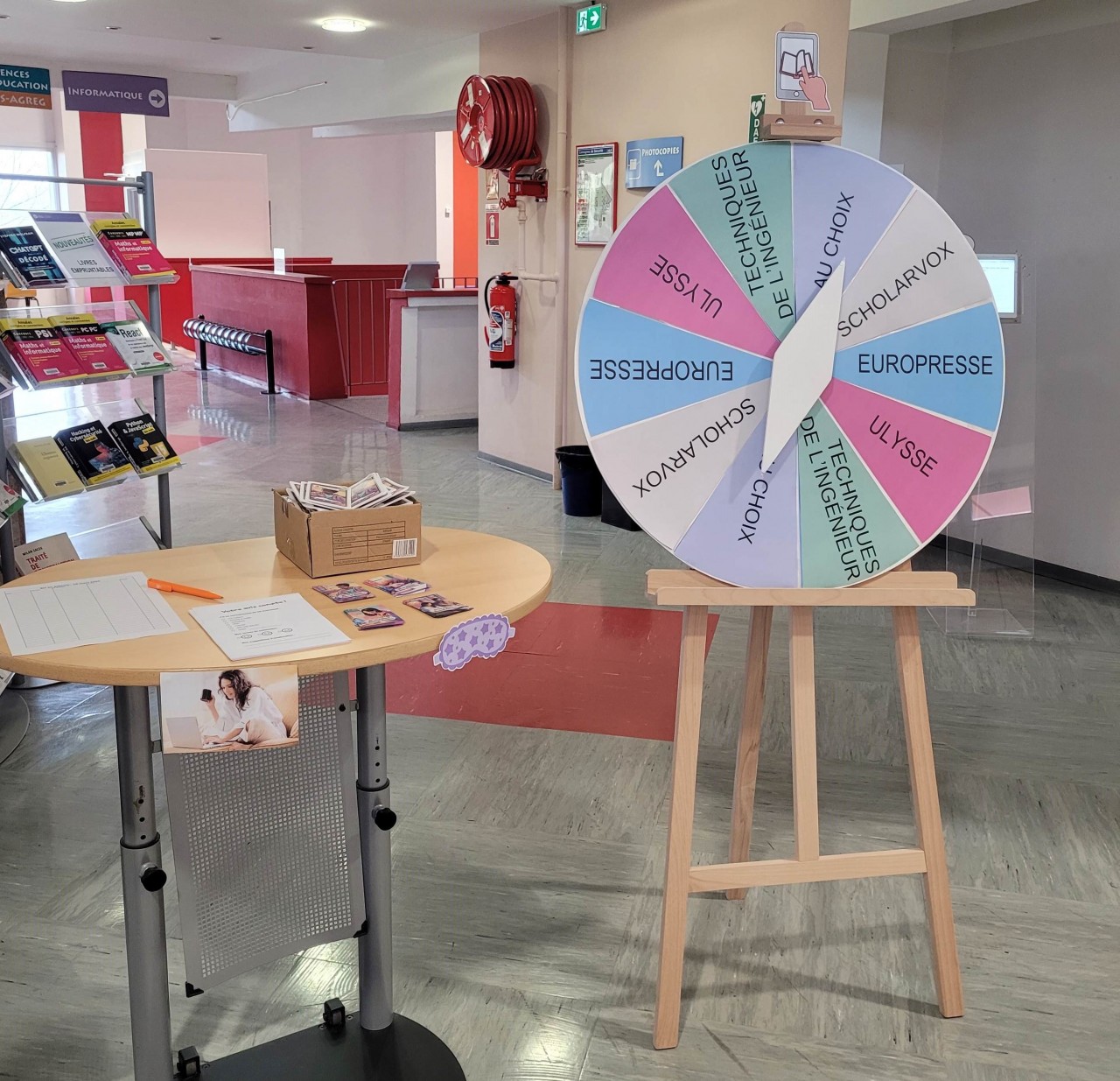Les étudiantes et les étudiants étaient invités à répondre à des questions à travers un jeu de cartes ludiques et des recherches documentaires sur les ordinateurs. C’était l’occasion de gagner des goodies, notamment un livret de présentation des bases de données essentielles dans leur domaine d’étude, ici les sciences. L’objectif était d’apporter aux étudiantes et aux étudiants des clés de compréhension de ces bases pour qu’ils puissent les réutiliser tout au long de leur parcours universitaire. Le personnel de la bibliothèque était présent toute la journée pour les accompagner et répondre à leurs questions.