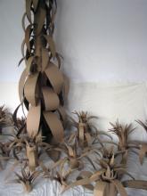 Installation immersive visant à plonger le spectateur dans un univers végétal. Les modules en carton sont construits sur la même base, les troncs sont réalisés à l’aide de tubes de diamètres variables sur lesquels des feuilles sont fixées. Ainsi on obtient des sections de différentes tailles ce qui donne à voir des plantes différentes dans leur tailles mais pas dans leur conception. Le spectateur pourra déambuler dans ce « jardin aquatique » pour se projeter dans un autre monde, un monde marin.
