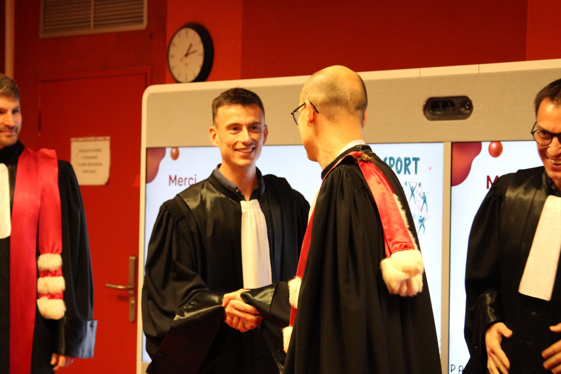Yann termina sa thèse en prêtant le serment d’Hippocrate, scellant ainsi son engagement solennel envers les principes éthiques et humanitaires qui guident sa future carrière médicale, sous les applaudissements chaleureux du jury et de sa famille, témoignant de leur fierté pour cette étape importante dans son parcours. Cette double réussite incarne l'esprit de détermination qui anime Yann Schrub. À la croisée de l'athlétisme de haut niveau et de la médecine, il ouvre de nouvelles perspectives et inspire ceux qui rêvent de concilier leurs passions. Pour Yann, la route vers les sommets ne fait que commencer, avec en ligne de mire les Jeux Olympiques de Paris 2024, où il compte briller aussi bien en tant que médecin que comme athlète d'exception.