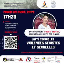 Le CDOS 54, La Faculté des Sciences du Sport de Nancy et la Ligue Grand Est de Sport Universitaire vous invitent à la conférence : Lutte contre les violences sexistes et sexuelles :échanges sur les prévention du sport universitaire en France et aux USA.