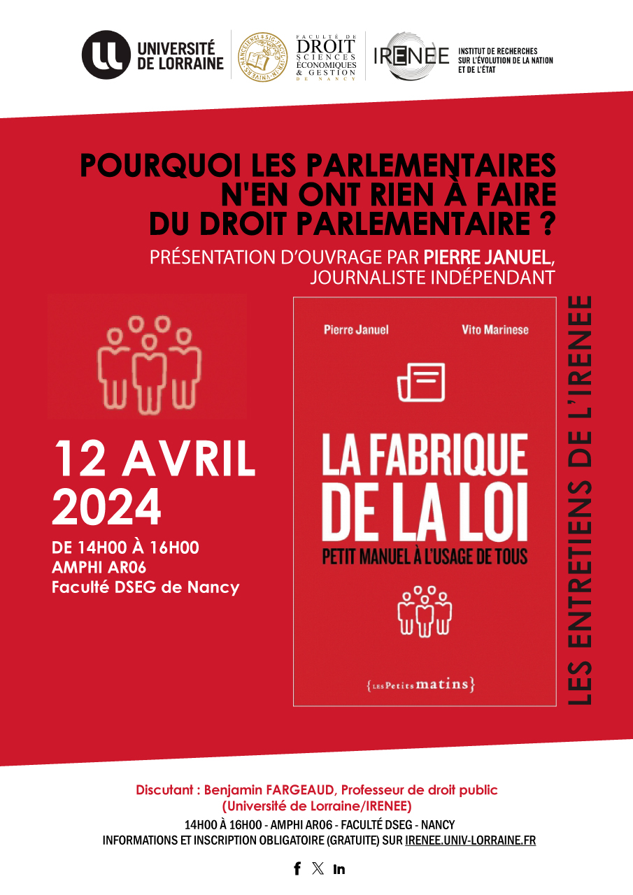 Discutant : Benjamin FARGEAUD, Professeur de droit public (Université de Lorraine/IRENEE).