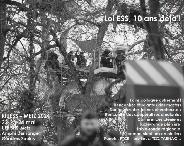 Les 23e Rencontres du Réseau inter-universitaire de l’économie sociale et solidaire (RIUESS) auront lieu les 22-23-24 mai 2024 prochains au Campus du Saulcy - Metz. (amphithéâtre Demange et bâtiment Sciences Humaines et Sociales.)
