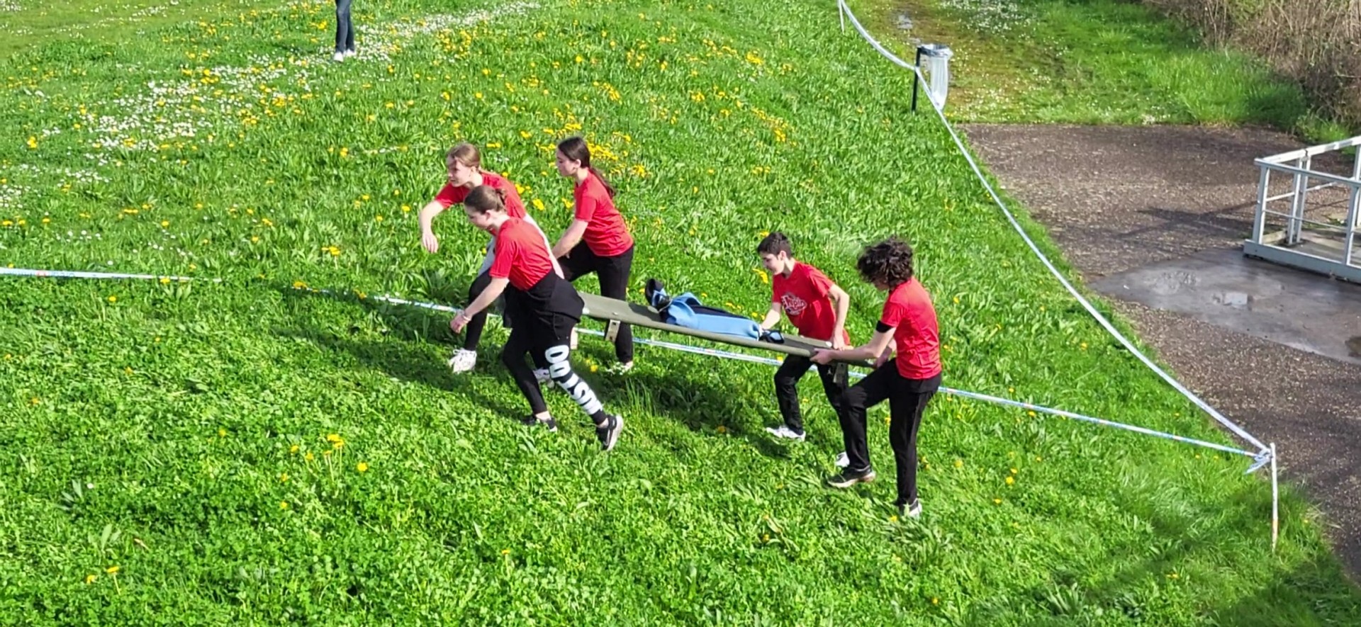 Après une course chronométrée, un premier atelier de lancer de grenades attendait les participants. Le but ? Lancer les grenades dans les cerceaux positionnés à différentes distances. En cas d’échec, des pénalités étaient données et répercutées sur le chrono final de l’équipe. Le deuxième atelier, plus technique encore, celui du pistolet, a fait l’unanimité chez les collégiens lors de la matinée. Après quelques centaines de mètres, un troisième atelier attendait les sportifs et sportives. Un atelier de brancardage lors duquel ils devaient porter un mannequin lesté et parcourir une boucle, le plus rapidement possible. Enfin et pour terminer en beauté ce raid, les élèves se sont heurtés à un parcours du combattant, composé de plusieurs obstacles à franchir et effectué sous forme de relais.