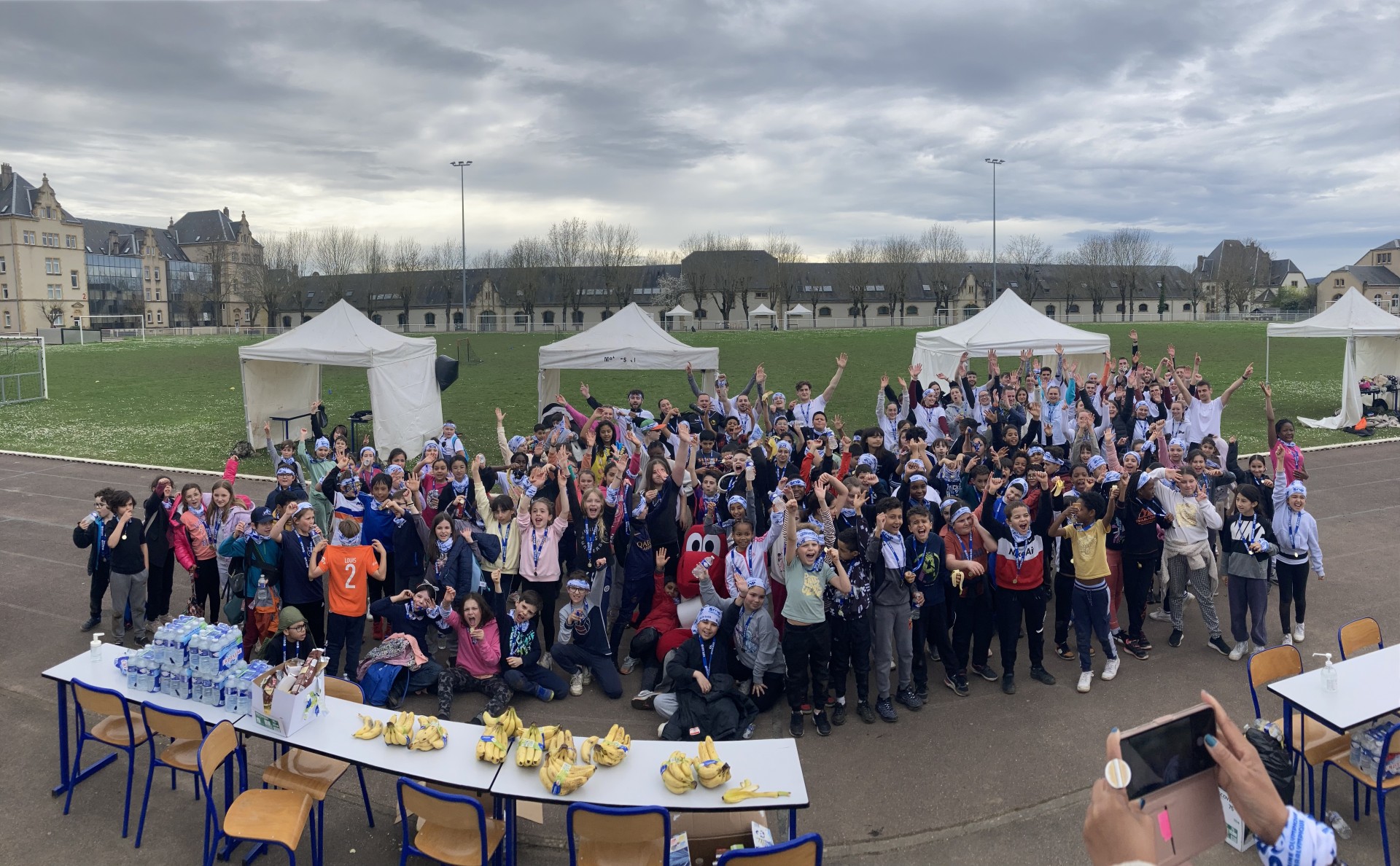 Les élèves présents ont partagé un pique-nique commun entre écoles du matin et écoles de l’après-midi, temps de midi animé par un groupe d’étudiants du parcours Education et Motricité qui a présenté avec brio la Danse des Jeux (l’un des 10 défis lancés par l’organisation des Jeux de Paris 2024), l’expérience a été renouvelée en faisant participer les enfants !