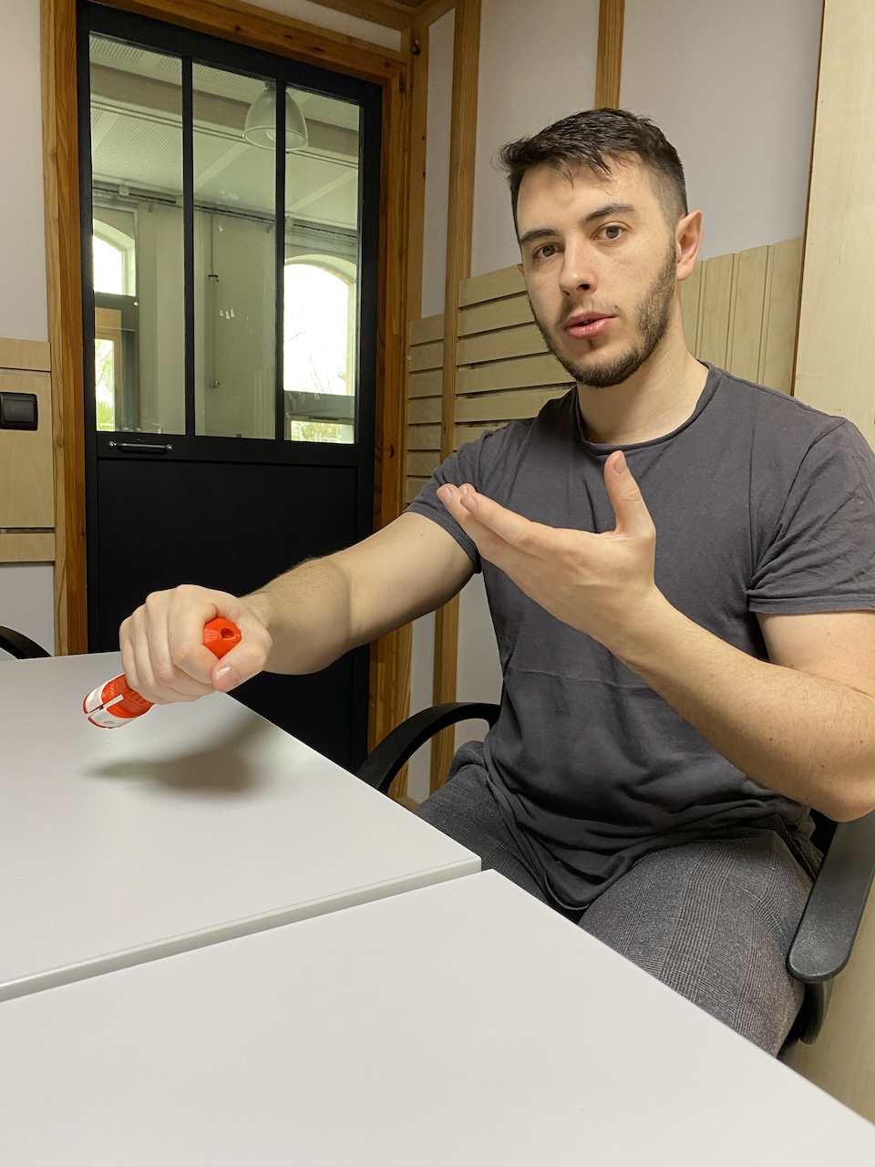 Gérôme Gauchard, responsable de la formation, contacte Geoffrey à l’issue de sa soutenance de master. “Il m’a proposé un sujet de thèse qui visait à améliorer les conditions des rameurs et plus spécifiquement sur des poignées adaptées pour l'aviron. Un important travail de développement de la poignée avait déjà été fait et sanctionné par deux brevets de l’université de Lorraine de J-Ph. Jehl, G.Gauchard et S.Bel que j’ai synthétisé dans un premier temps. Sur les deux dernières années de doctorat la majeure partie de mon travail a consisté à tester les méthodes d’individualisation des poignées, chaque rameur ayant sa propre paire de poignées adaptée à plusieurs critères morphologiques. Notre proximité avec le pôle aviron France, situé à quelques centaines de mètres de CARE Grand Est, m’a permis de faire les tests directement sur le terrain et en lien direct avec les athlètes : augmenter le confort tout en maintenant la performance, réduire les contraintes…”