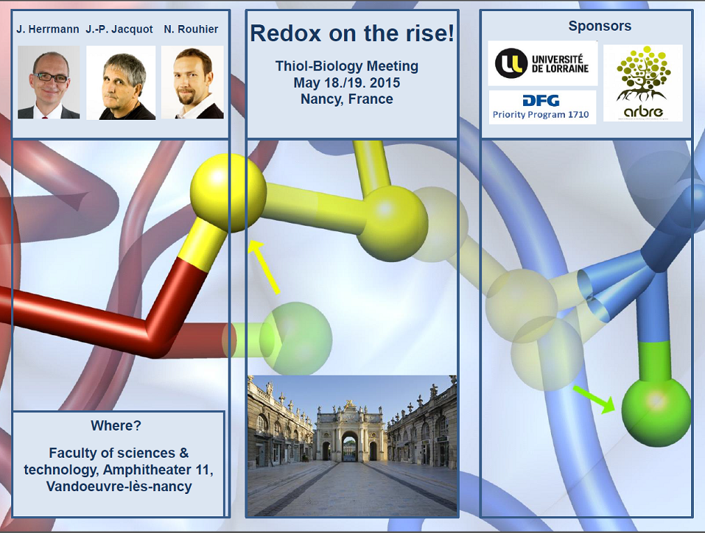 Cette manifestation est la suite d'un congrès organisé à Kaiserslautern en 2013 par Johannes Herrmann, Markus Hoth et Jean-Pierre Jacquot (Université de Lorraine) et aura pour but de faire le point sur les recherches concernant la régulation redox en biologie et médecine dans les laboratoires de la Grande Région. Il combinera la présence d'étudiants en doctorat et post doctorat et celle de chercheurs confirmés. Le comité d'organisation senior sélectionnera un panel d'étudiants chargés de l'organisation pratique de ces journées.