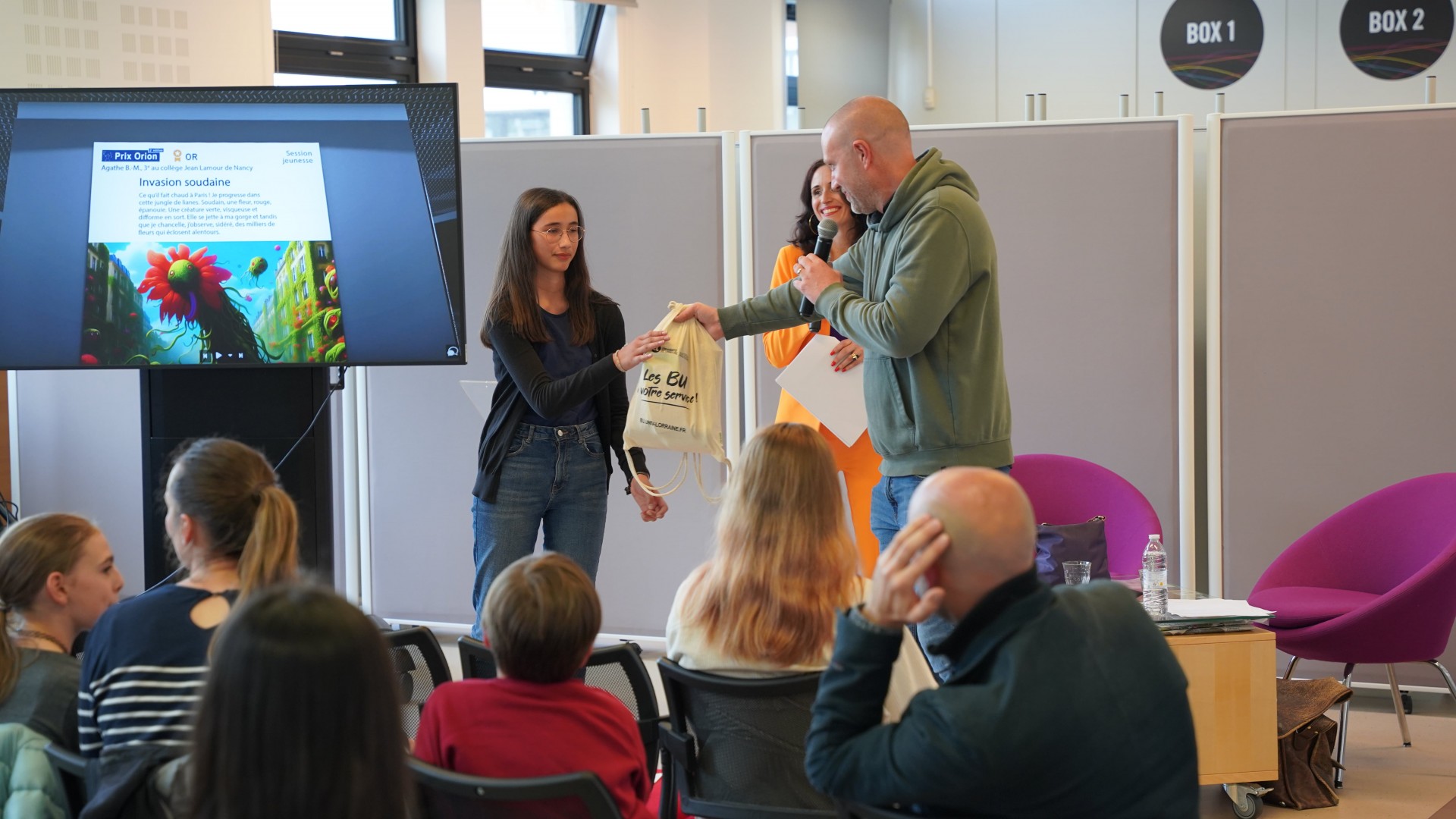 La cérémonie de remise des prix du concours a eu lieu le 21 mai 2024 à la BU Lettres & SHS de Nancy, en présence de Célia Ibanez, romancière et présidente du jury. Environ 80 personnes étaient présentes à la remise des prix : participants au concours, membres du jury et passionnés de SF.