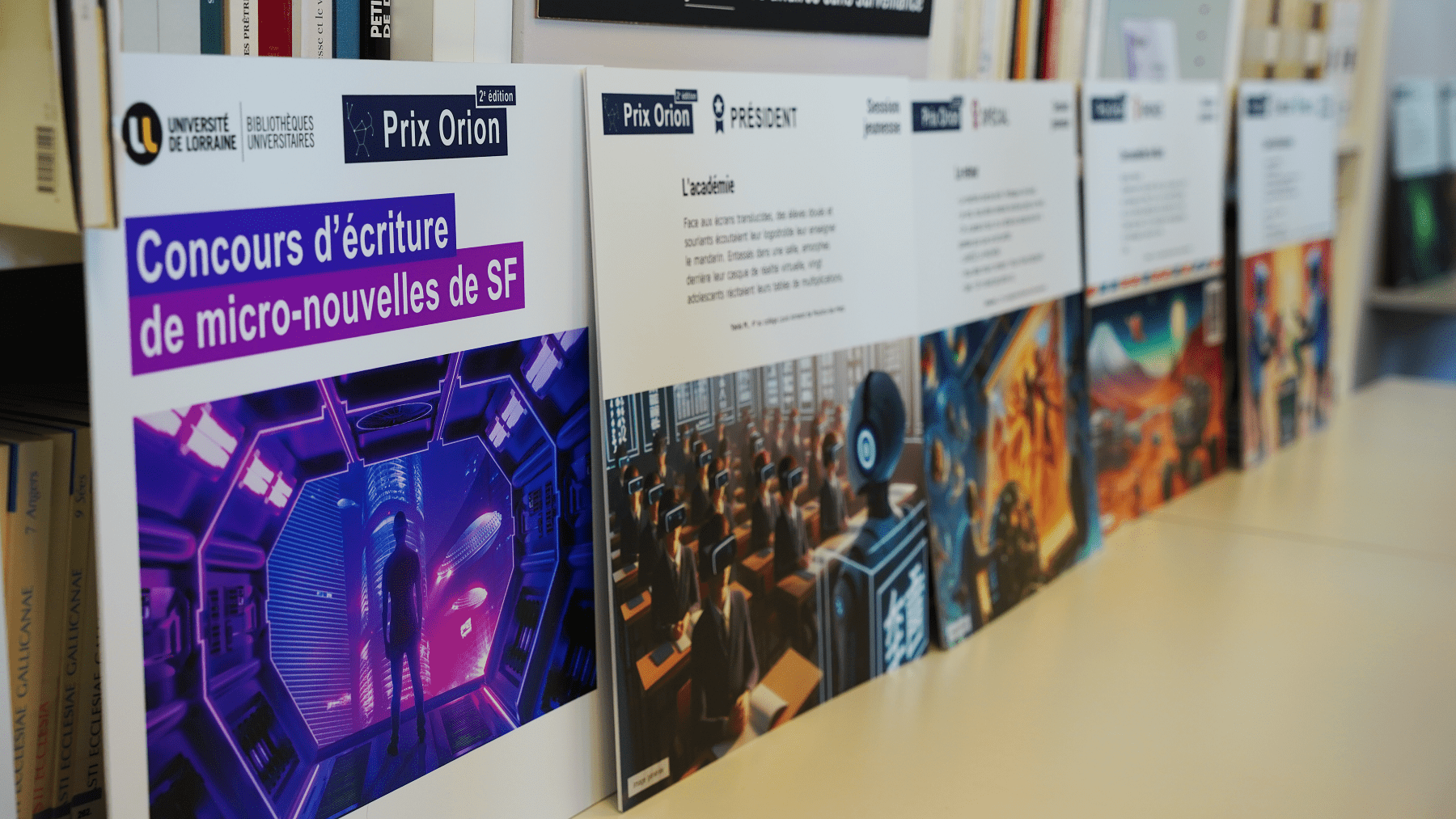 Découvrez les textes lauréats, imprimés en grand format et illustrés par intelligence artificielle. Cette exposition est accessible librement à la BU Lettres & SHS de Nancy du 22 mai au 28 juin 2024.