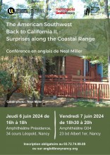 Neal Miller, conférencier anglophone pour les Amis de la Bibliothèque américaine de Nancy, poursuit son cycle de conférence « The American Southwest » et intitule son 17e volet : « Back to California, surprises along the Coastal Range ». Il vous emmène avec lui le long des côtes pour vous faire découvrir l’histoire et les paysages de cette chaîne de montagnes. Embarquez pour ce surprenant voyage qui longe le Pacifique et offre des paysages très différents en couvrant plusieurs milliers de kilomètres de littoral.