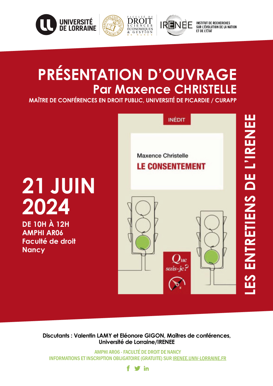 Présentation de l'ouvrage Le consentement (PUF coll. "Que sais-je" 2023) par Maxence CHRISTELLE, Maître de conférences en Droit public, Université de Picardie / CURAPP.