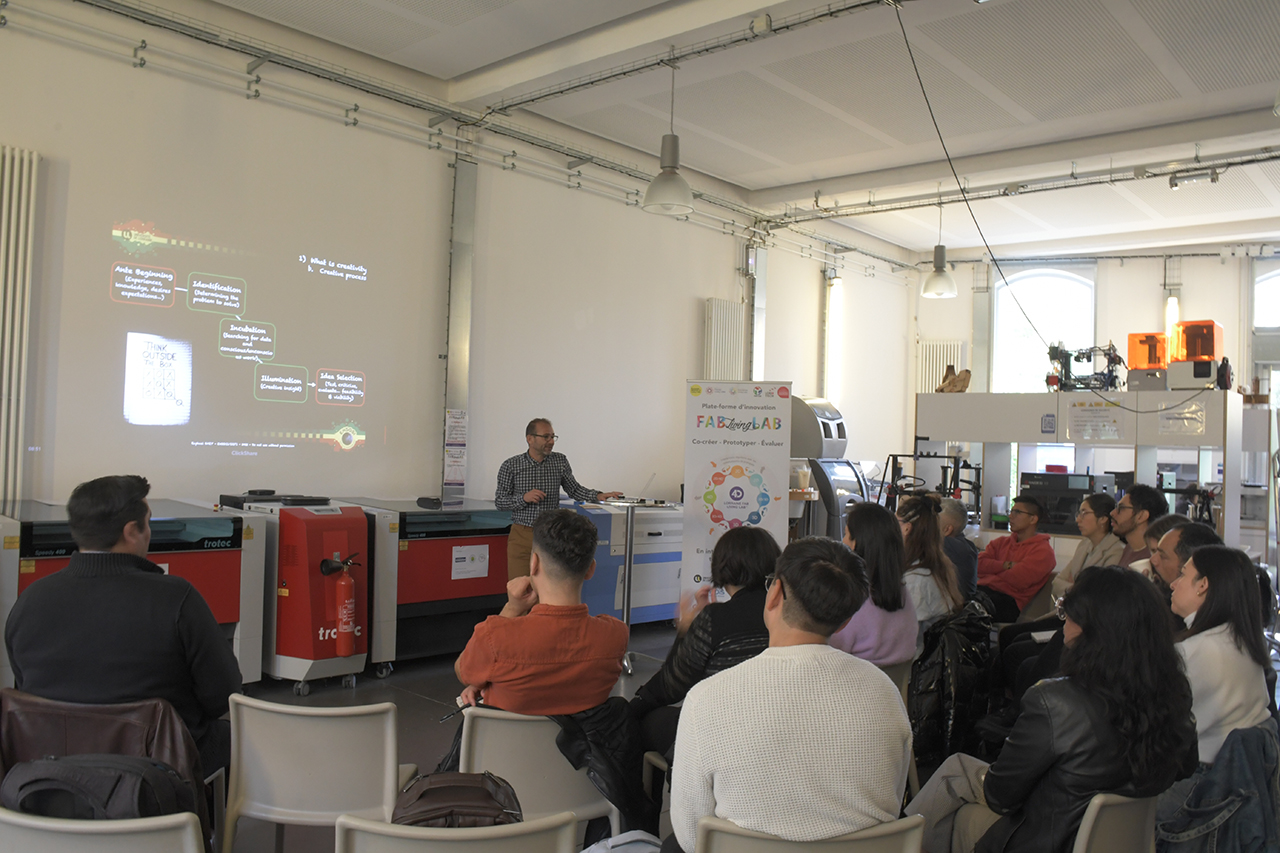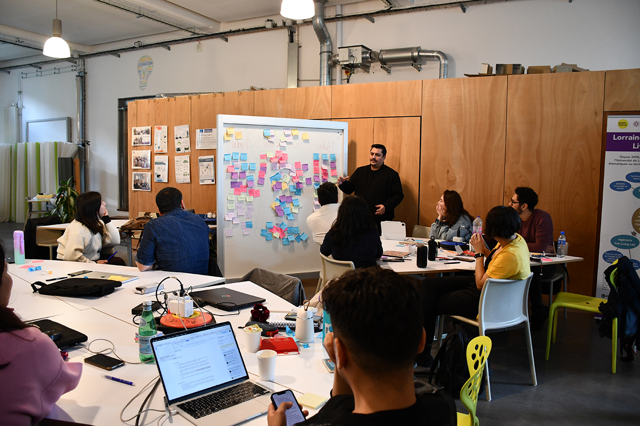 - Le premier jour, après avoir été accueillis par les deux porteurs du projet, Mauricio Camargo, directeur de l’ERPI, et Ferney Osorio, enseignant-chercheur à l’ENSGSI, l'équipe de l'USACH a participé à un atelier d’initiation à la créativité animé par Raphaël Bary, maître de conférences à l’ENSGSI.