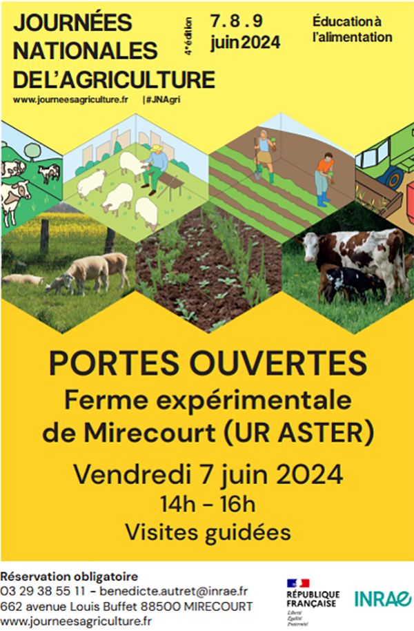 La ferme expérimentale ASTER (AgroSystèmes Territoires Ressources) est une unité de recherche rattachée au Centre INRAE Grand Est - Nancy. Elle est dotée d’une exploitation de type polyculture-polyélevage diversifié en agriculture biologique et conduite dans une logique d’autonomie et de meilleure rémunération du travail agricole. Le projet de recherche porte sur les relations entre agriculture et territoires pour accompagner les transformations vers une meilleure prise en compte des ressources et durabilité environnementale. Prévoir de bonnes chaussures et une tenue adaptée à la météo. Événement dans le cadre des journées nationales de l’agriculture