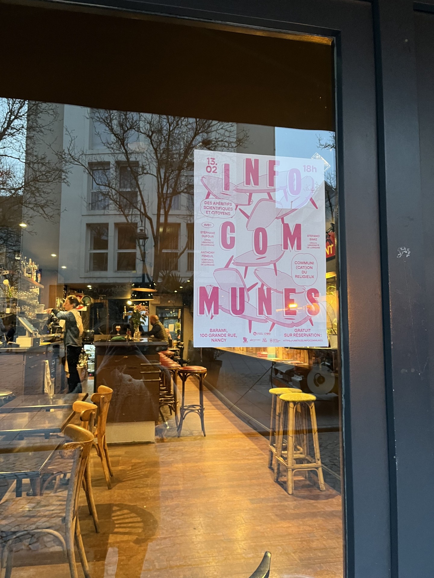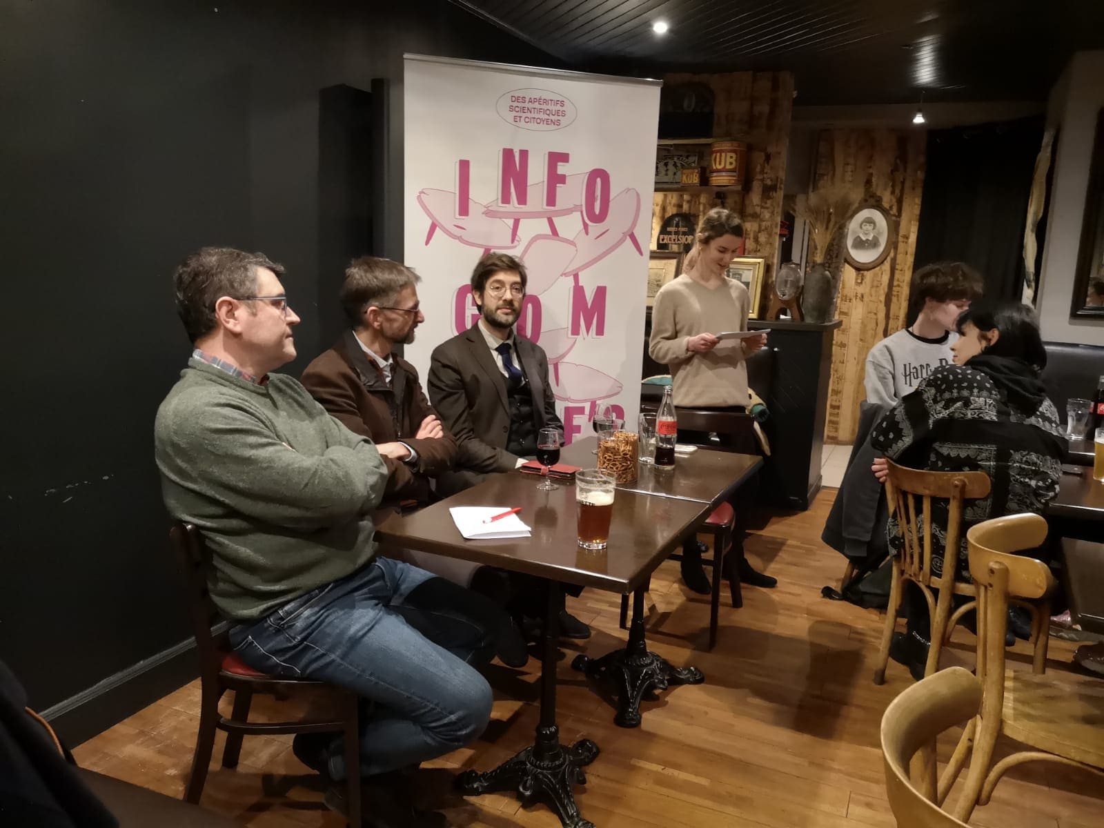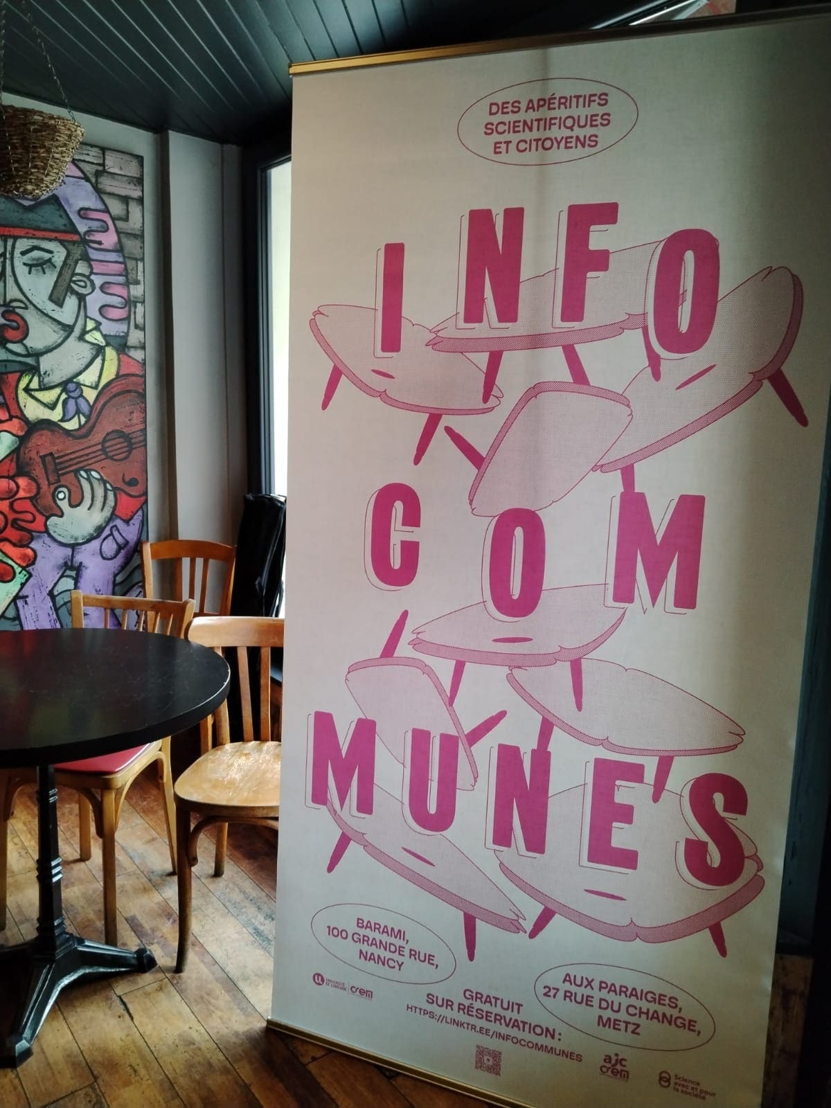 Créé par Pénélope Selhausen-Kosinski (Crem), revivez en images ce cycle d'apéritifs scientifiques. À Metz et Nancy, en alternance, les Infocommunes ont eu la joie d'accueillir : Anne Cordier, Stéphane Dufour, Anthony Feneuil, Sébastien Genvo, Fabienne Greffet, Christophe Benzitoun, Olivier Ageron, Gaël Stephan, Stefano Simiz.