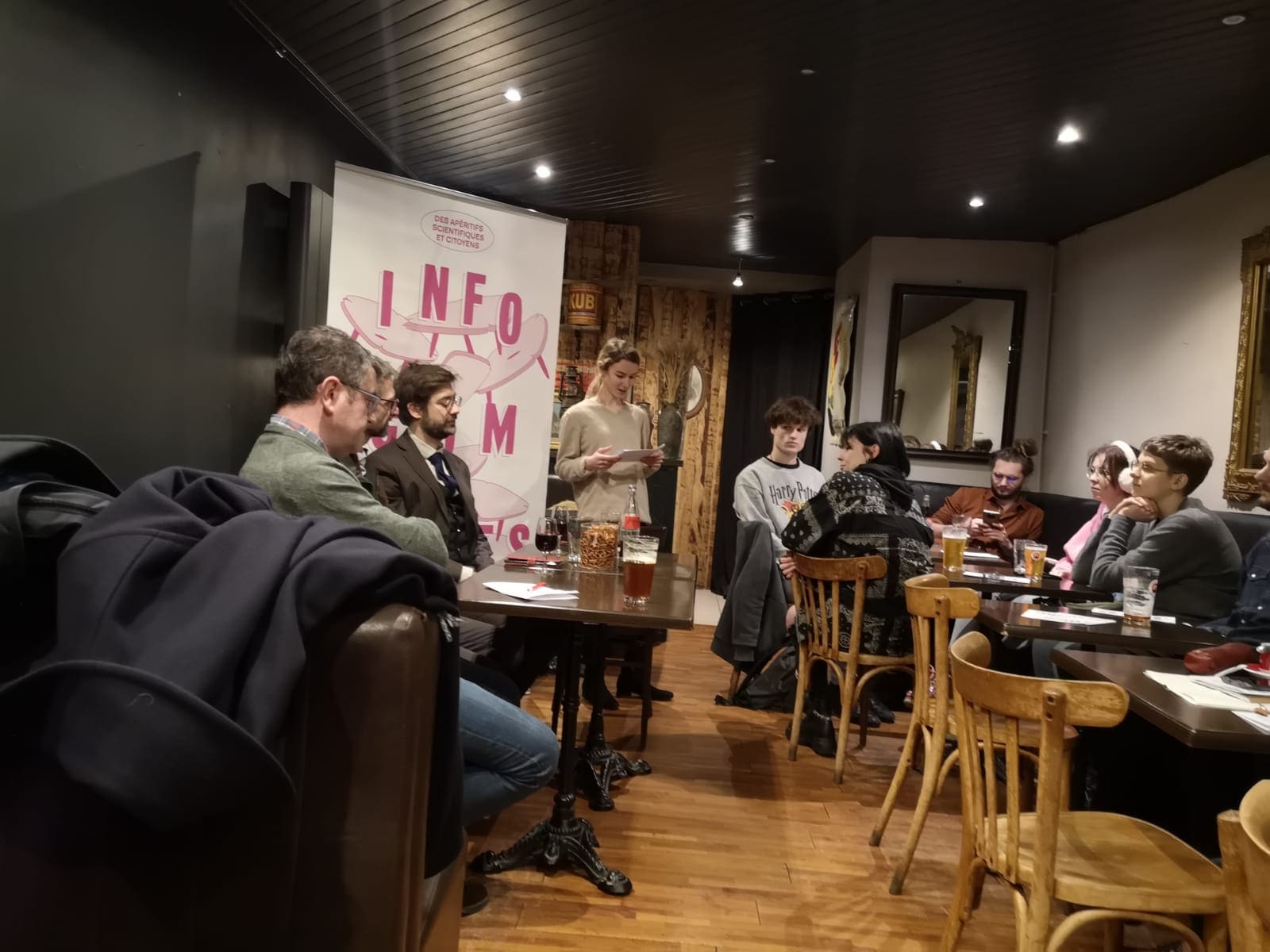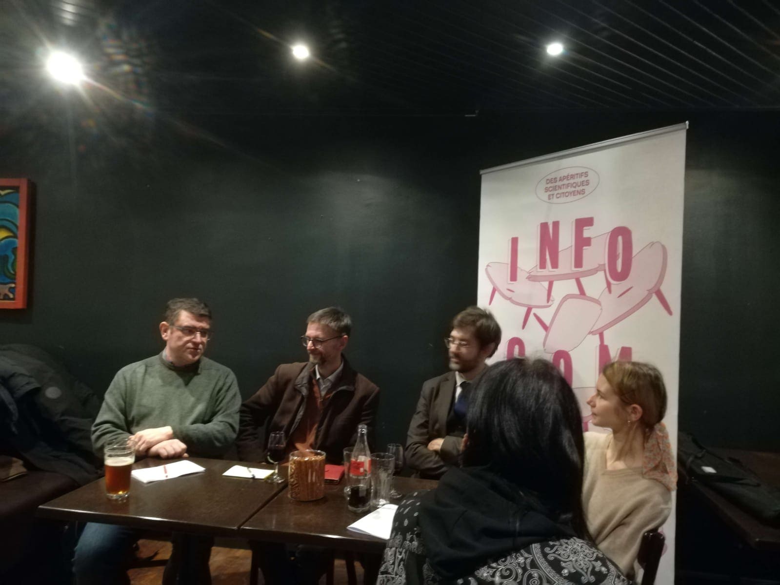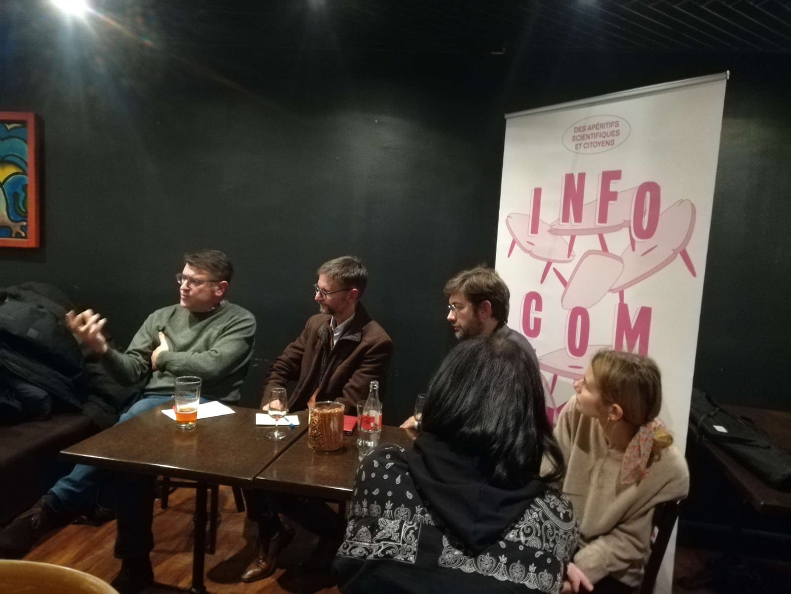 Créé par Pénélope Selhausen-Kosinski (Crem), revivez en images ce cycle d'apéritifs scientifiques. À Metz et Nancy, en alternance, les Infocommunes ont eu la joie d'accueillir : Anne Cordier, Stéphane Dufour, Anthony Feneuil, Sébastien Genvo, Fabienne Greffet, Christophe Benzitoun, Olivier Ageron, Gaël Stephan, Stefano Simiz.