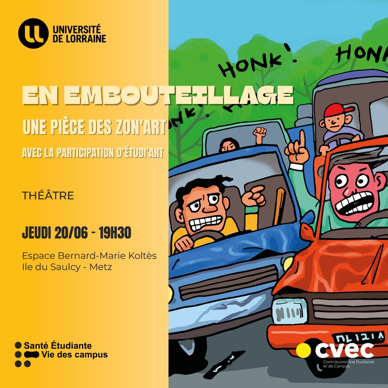 En collaboration avec la Maison de l'étudiant Lorraine Nord, les étudiants de la troupe des « Zon’Arts » se mettront cette année en scène sur le thème « Des Embouteillages ».