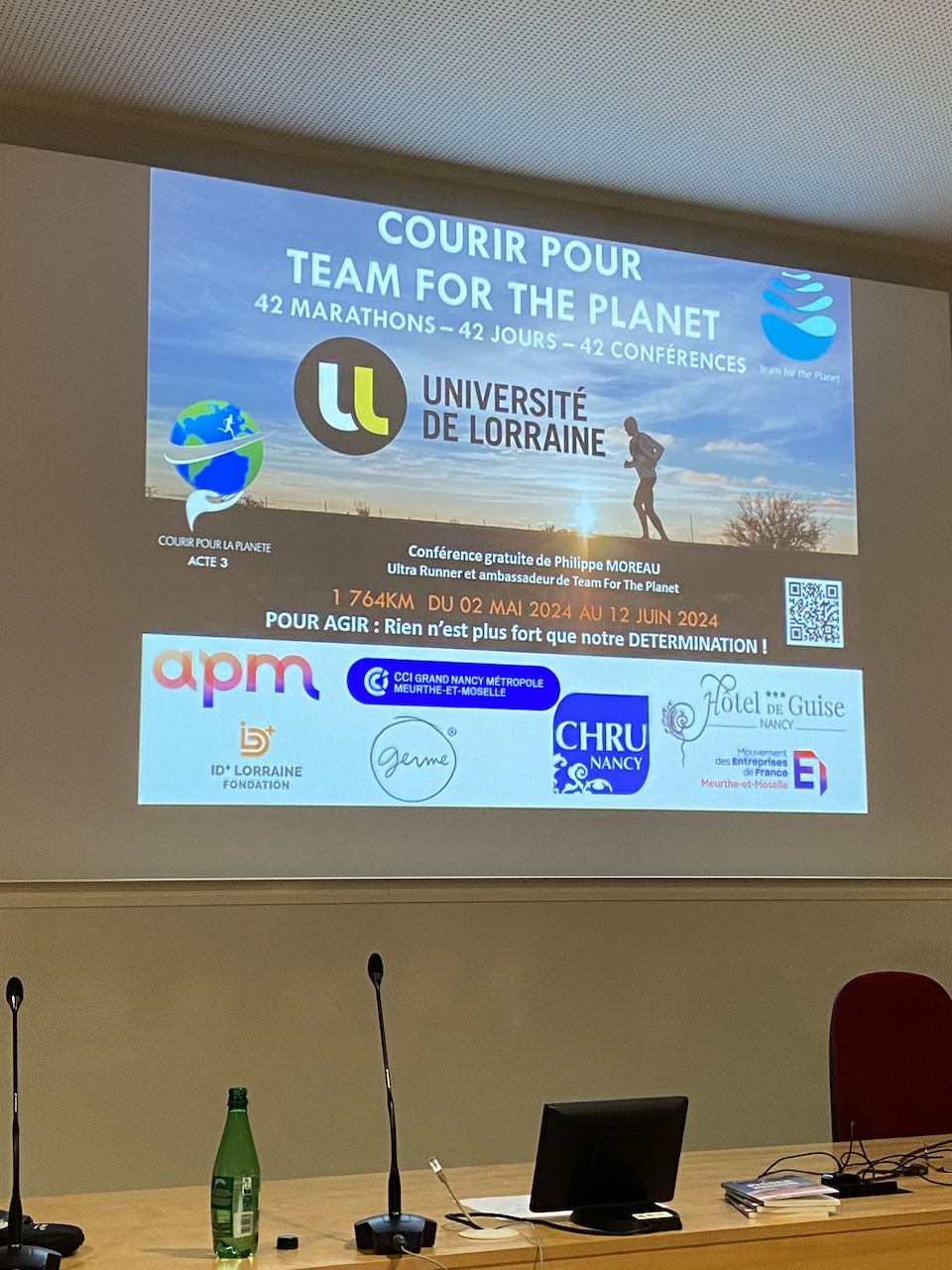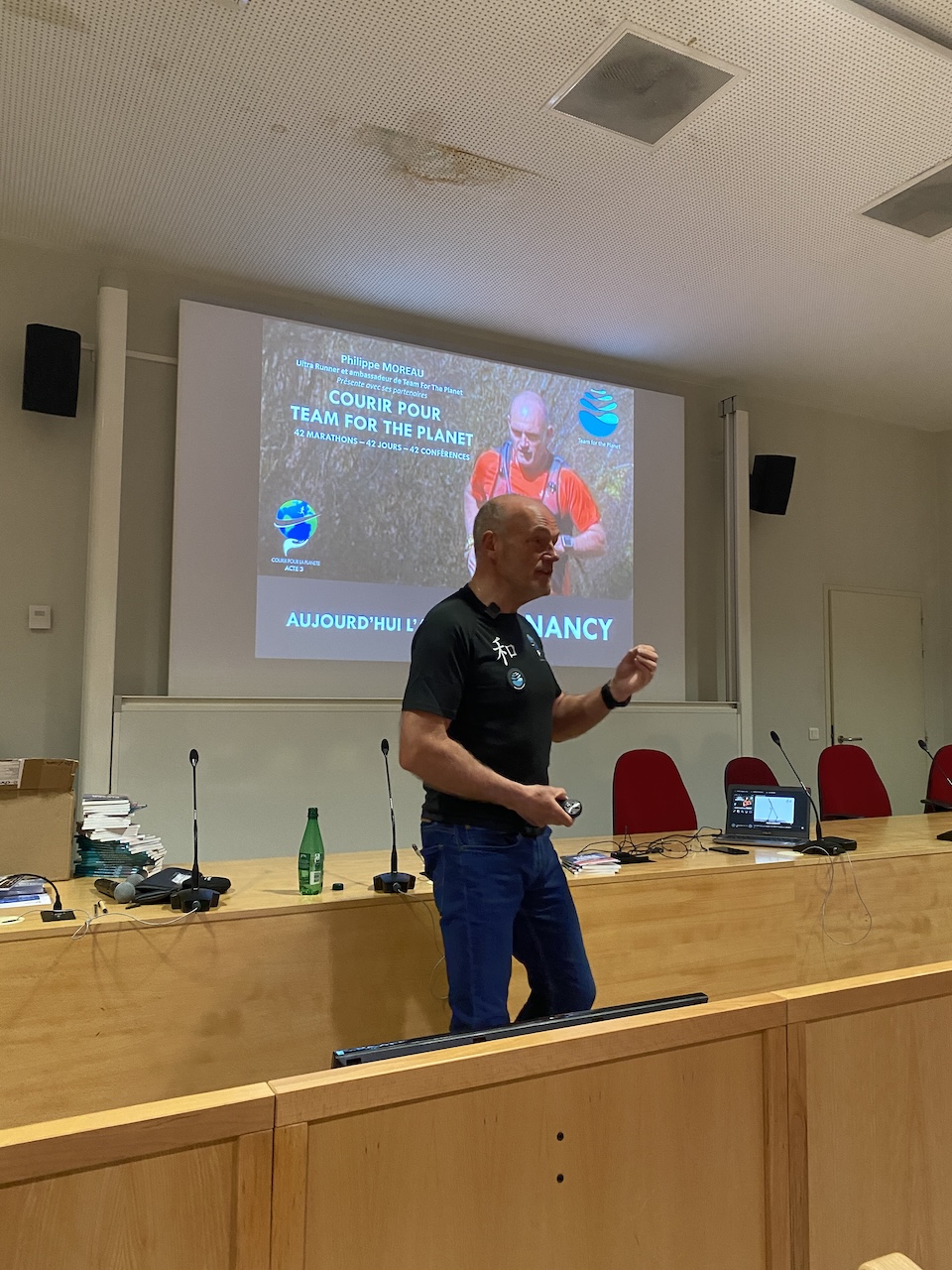 Philippe Moreau court pour la planète : 42 marathons en 42 jours. Dimanche 2 juin 2024, il était de passage à Nancy. Au terme de son 32e marathon, cet ambassadeur de l’association Team For The Planet a donné rendez-vous à la présidence de l’université pour sensibiliser à la protection de la planète et donner quelques clés pour agir.