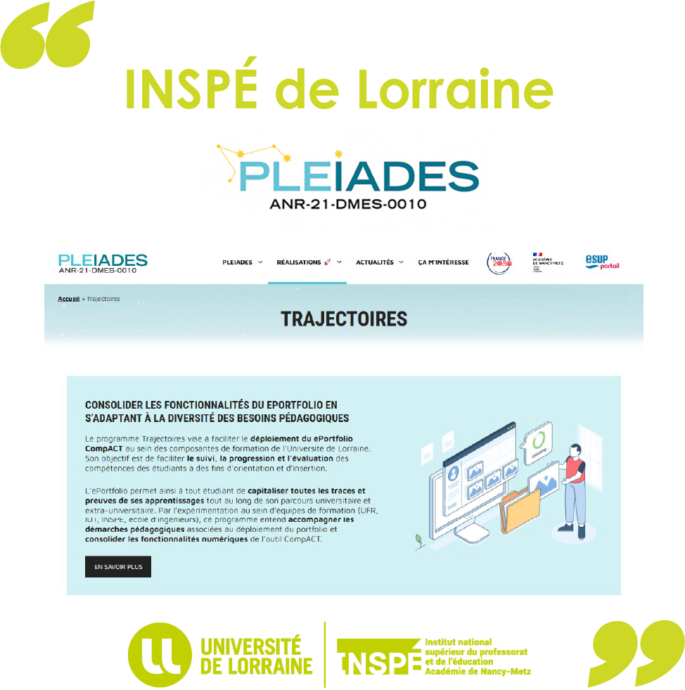 En savoir plus sur le programme Trajectoires et les exemples de projets de déploiement pédagogique du e-portfolio à l'INSPÉ de Lorraine.