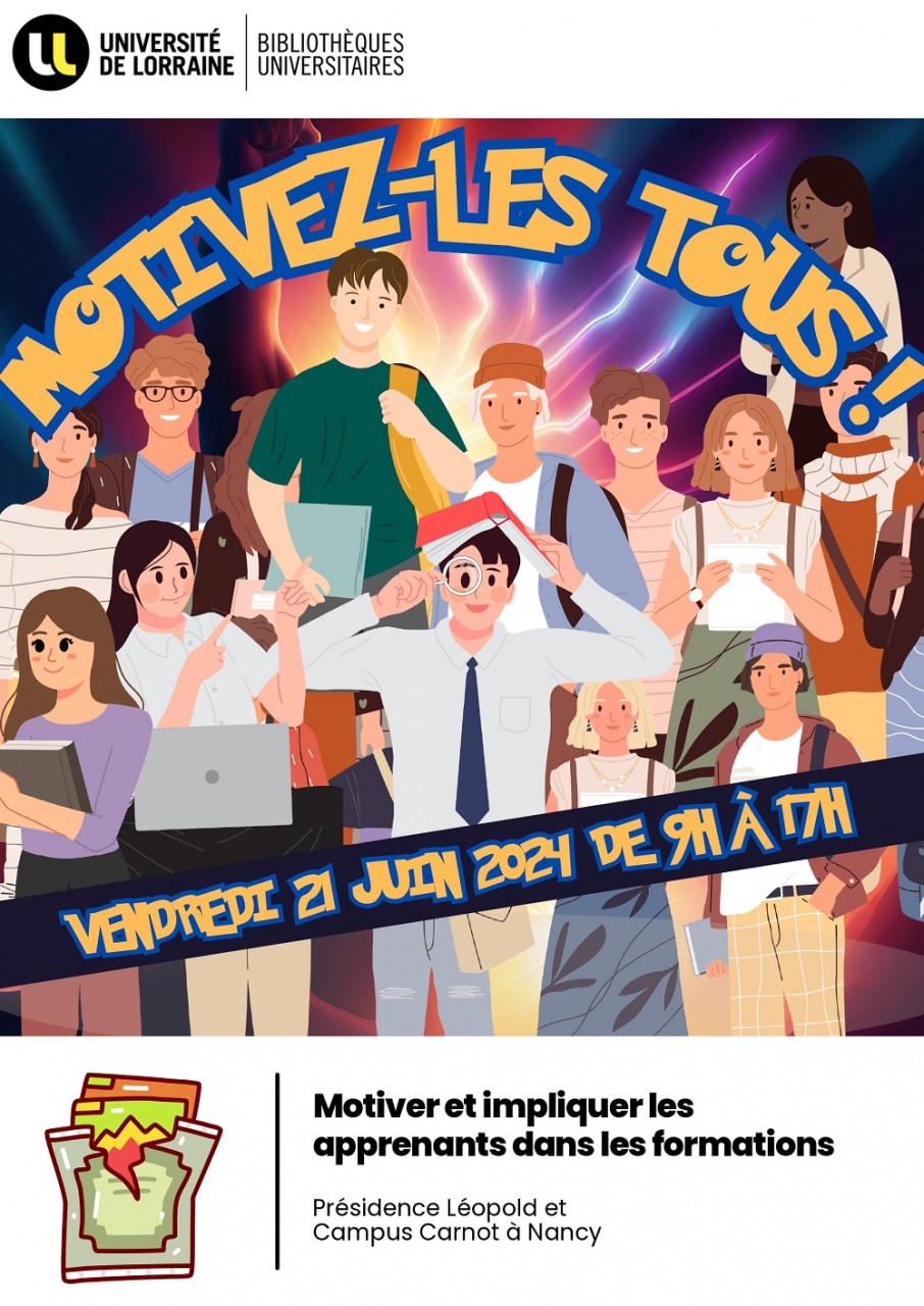 La seconde édition de la journée des formateurs des BU de Lorraine s’est déroulée le vendredi 21 juin 2024 sur le site de la Présidence Léopold de 9h à 17h, avec pour thème "Motivez-les tous ! motiver et impliquer les apprenants dans les formations".