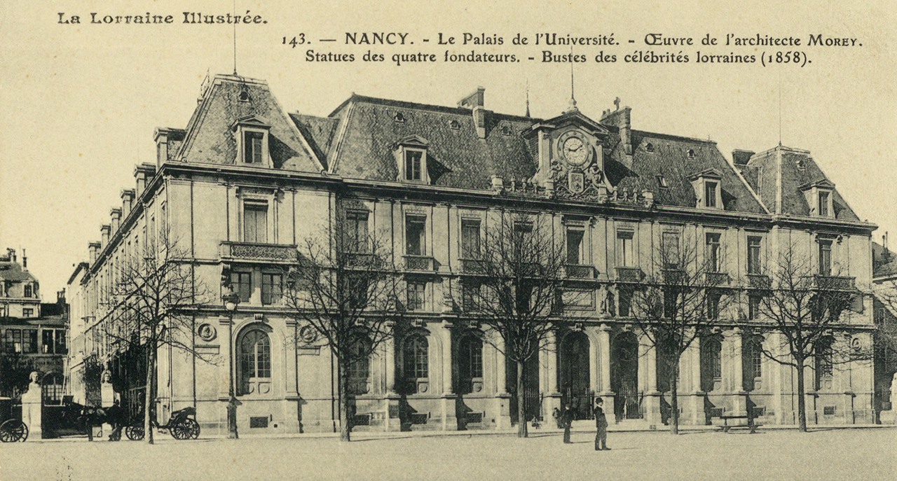 Depuis sa construction en 1862 par l’architecte nancéien Prosper Morey, le palais de l’Académie n’a eu de cesse d’évoluer au gré de ses occupations et constructions d'annexes successives. Salon Napoléon III, amphis historiques comme modernes, escalier d’honneur, salle des plaidoiries, verrière et mobilier Art déco… arpentez la faculté et la bibliothèque à la découverte d’un patrimoine insolite et caché.